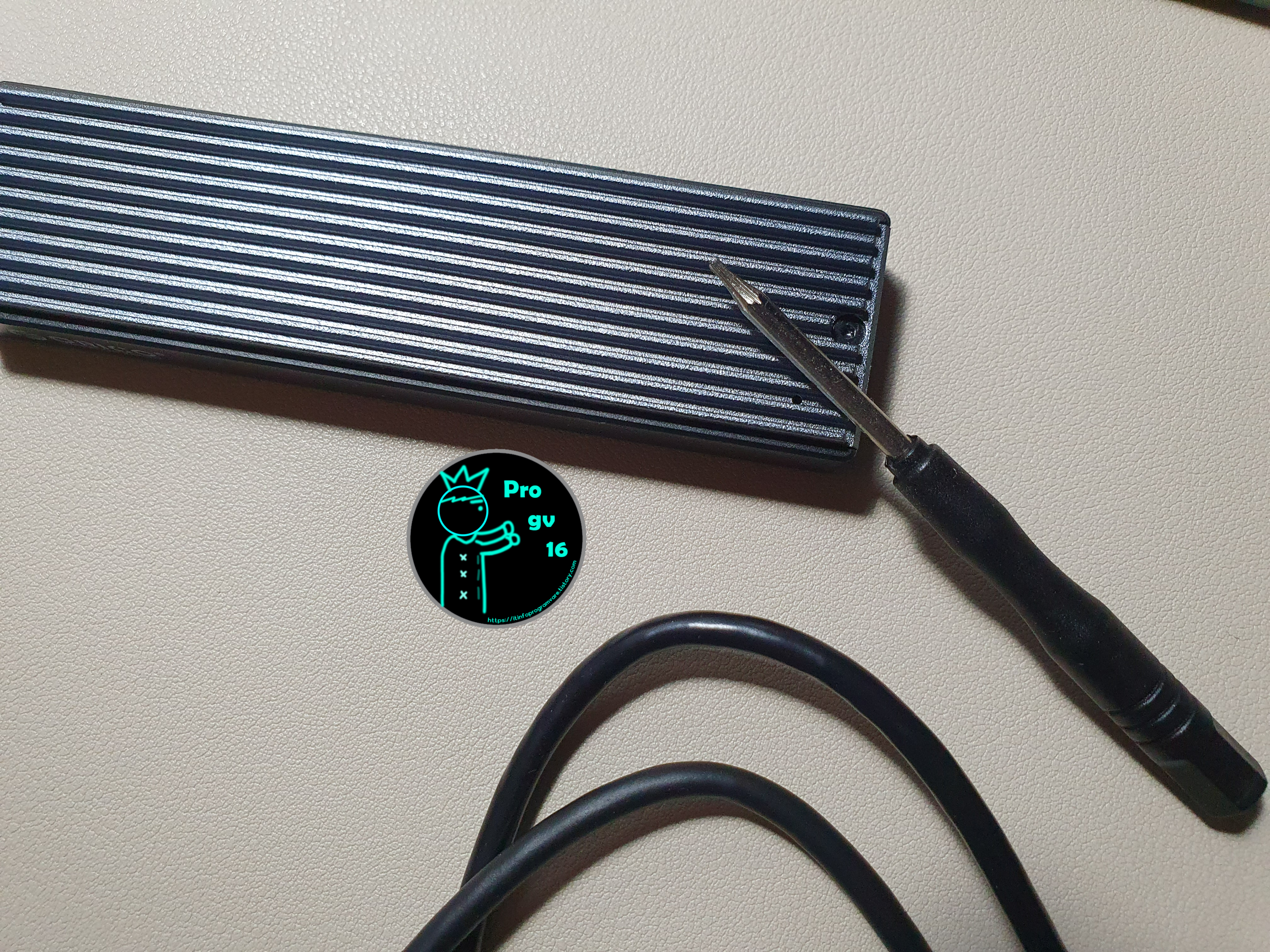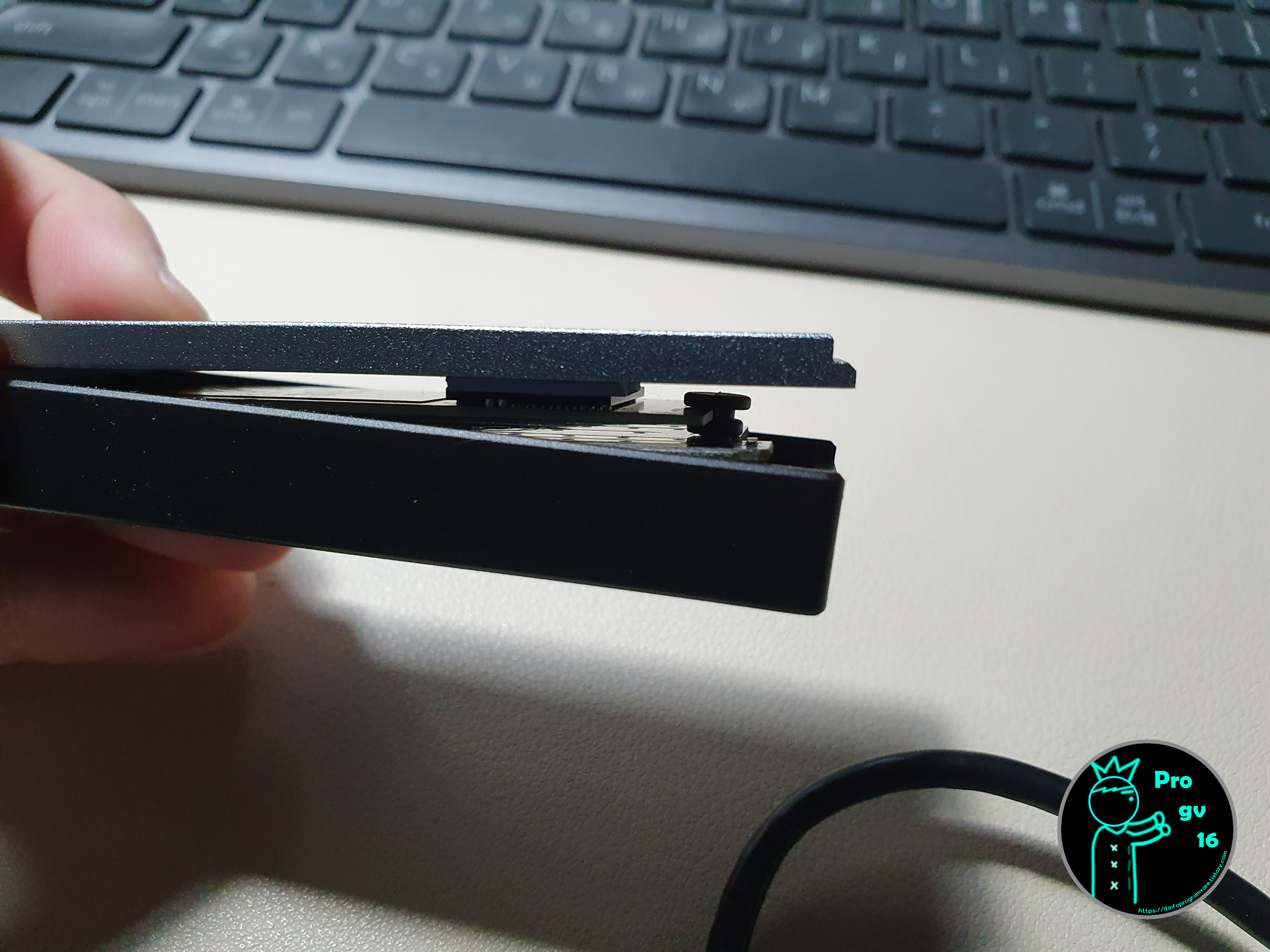 처음에는 당연히 PC에 연결할 목적으로 구매한 케이스이기 때문에 이전에 사용하던 SSD를 새로 구매한 Nvme 외장케이스에 연결한 후 USB케이블도 같이 연결해 주었습니다.