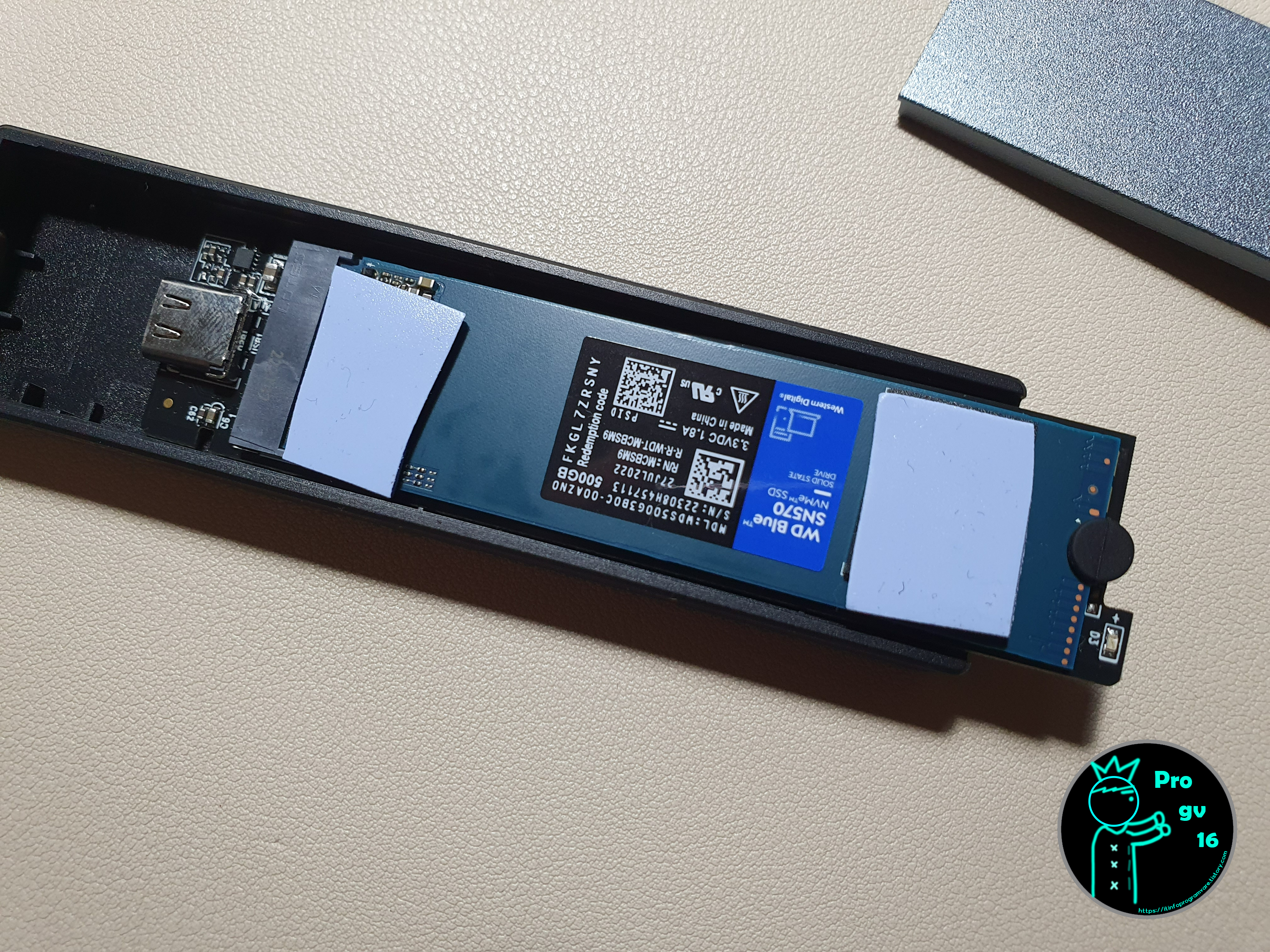 도착한 SSD를 개봉하여 기존에 사용하던 PM9A1 SSD의 파일들을 백업하여 준 뒤, 오리코 NVME 외장케이스의 나사를 풀어서.. M.2 슬롯에 연결해줍니다. 떨어지지 않게 확실히 연결해 주시고, 동봉되어 있는 고무를 이용하여 SSD를 고정시켜 줍니다.