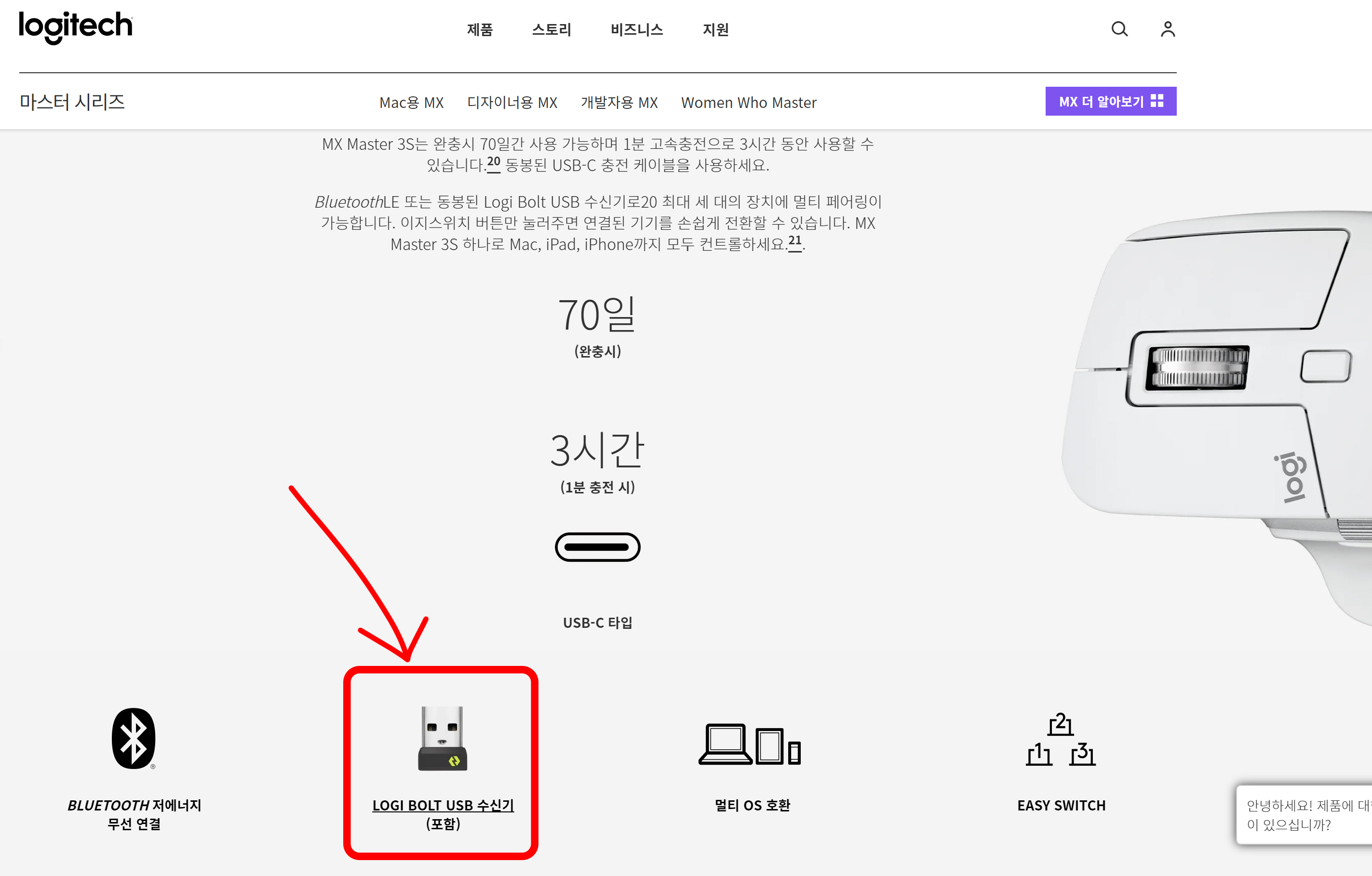 하지만 의문이 들었습니다. MX MASTER 3S는 기본탑재 리시버가 로지볼트였습니다. 그동안 사무용으로 사용해오던 기기들은 대부분 유니파잉(Unifying) 수신기 일 텐데.. 이제는 MX시리즈 외에도 전 제품 무선 라인업은 로지볼트로 제작이 됩니다. (With logibolt receiver...?)