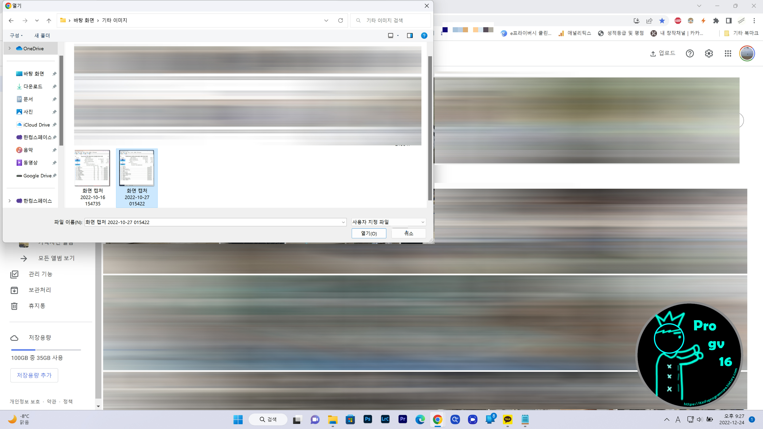 위에 이미지와 같이 업로드를 클릭한 후 컴퓨터를 누르면 아래와 같이 수동적으로 이미지를 선택하여 업로드 할 수 있게 됩니다. (복수선택, 영상포함 업로드도 가능)