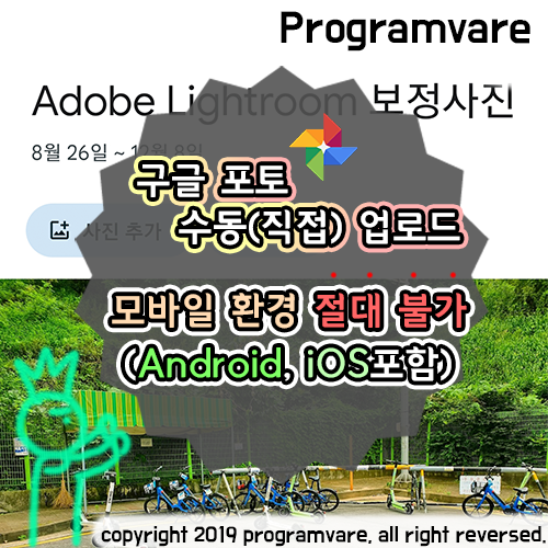 구글 포토는 구글(Google)사에서 제작해 놓고, 정작 자신들이 만든 운영체제인 안드로이드에서도 기능을 빼먹고, IOS는 뭐.. 간혹 가다가 자동 업로드도 앱에 한 번씩 들어가줘야 잘 되기는 하지만.. 아무튼, 직접 업로드가 모바일 환경 (APP)이면 안 된다는 것이 아쉬운 부분이었습니다.