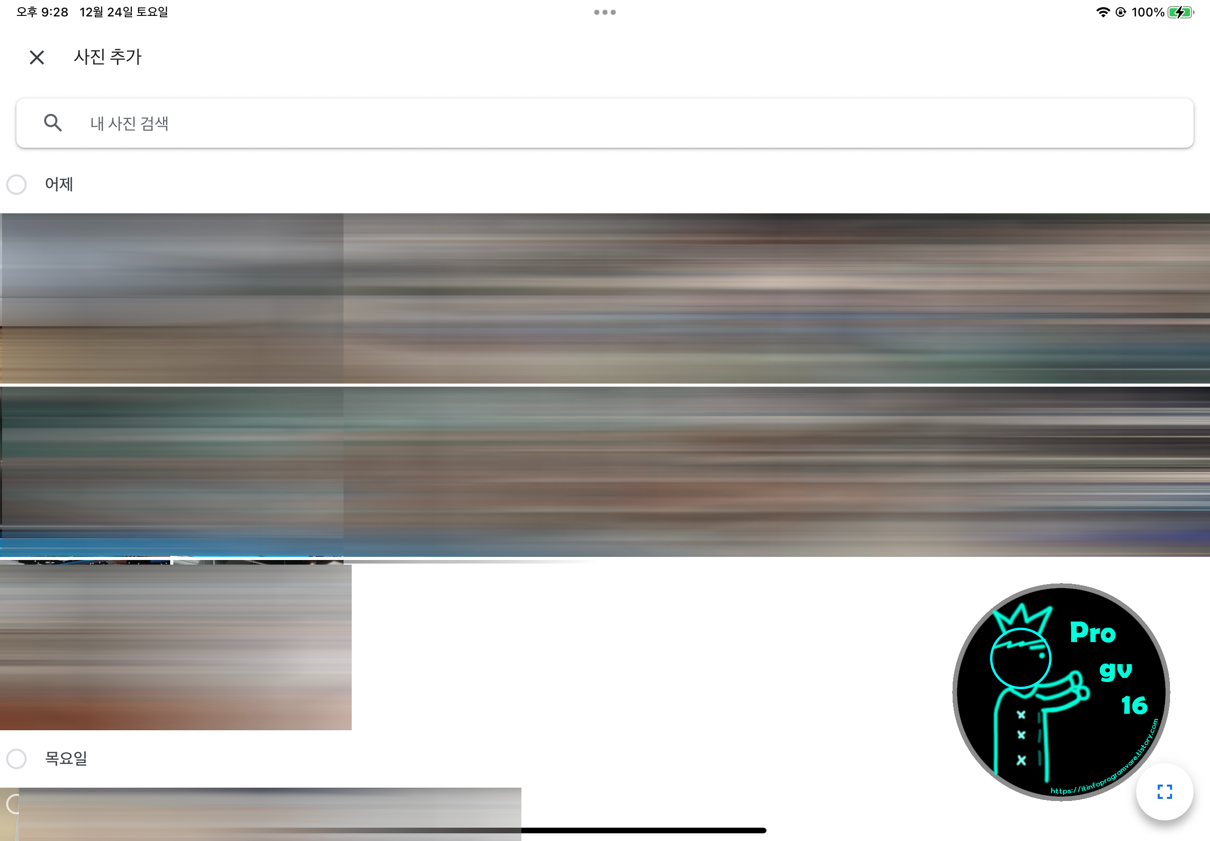 다음은 iPADOS입니다. 앨범에서 사진추가 누른 다음에 나오는 페이지입니다. 역시나 안드로이드와 똑같은 화면을 보이고 있습니다. 더 이상 긴 설명 할 필요가 없을 것 같습니다.