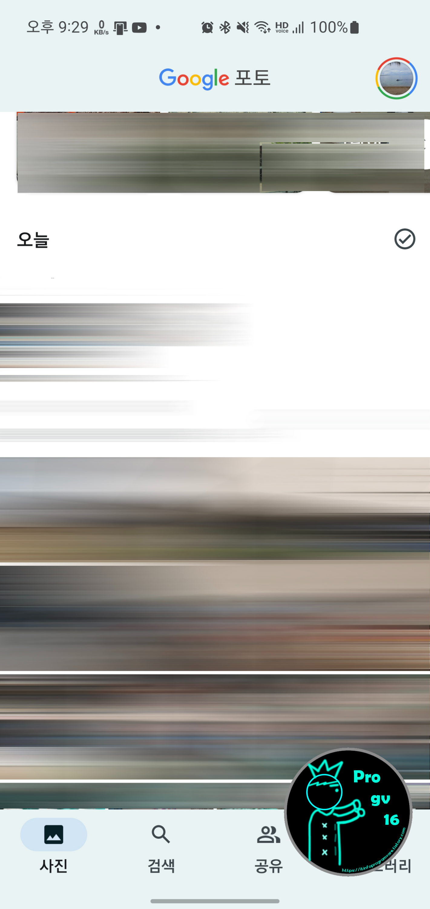 일단 안드로이드 운영체제의 앱을 살펴보겠습니다. 흔히 볼 수 있는 구글 포토의 메인화면입니다. 사진들을 개인정보로 인하여 블러처리 해놓았습니다. 이 점 양해 부탁드립니다.