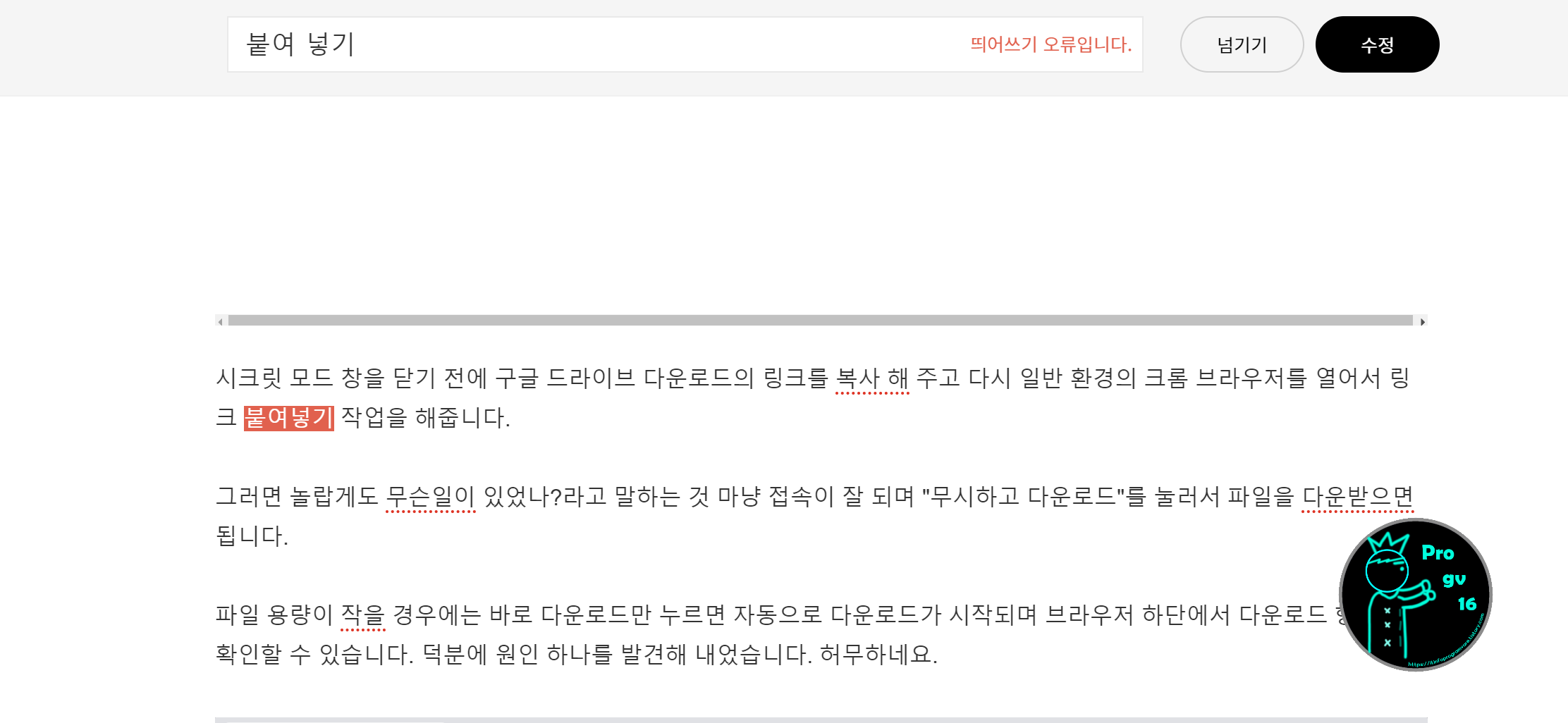기능을 써보니까 오히려 이전처럼 직접 보고 고치는 것이 더 낫겠다. 라는 생각이 들더라고요. 진짜 있는 오타는 감지도 못하고 말이죠.