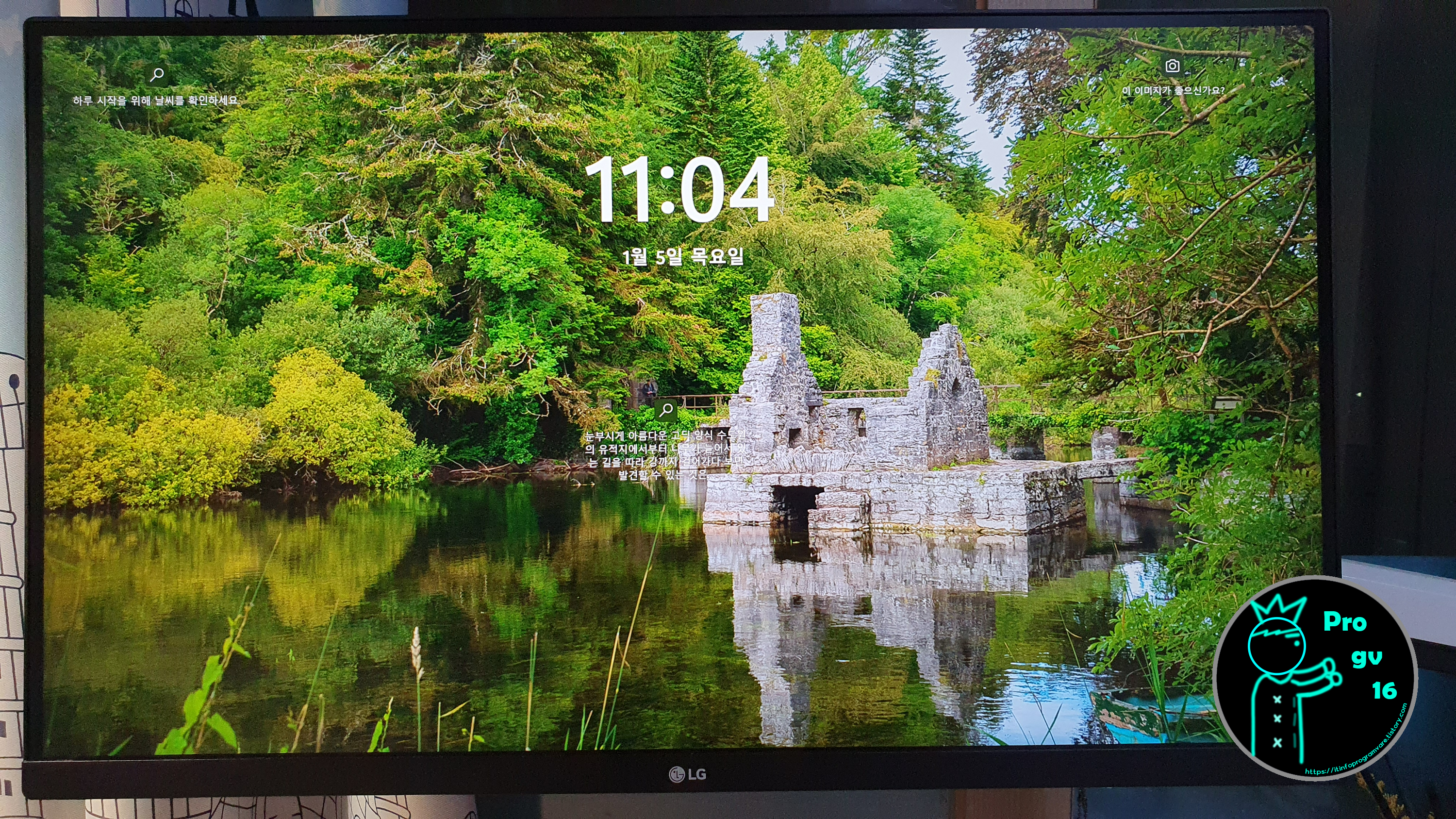 절전모드가 자동으로 해제되고 나면 위 사진과 같은 잠금화면이 뜹니다. 잠금화면 설정이 없는 분들은 이전에 실행 중인 프로그램이 뜰 겁니다.