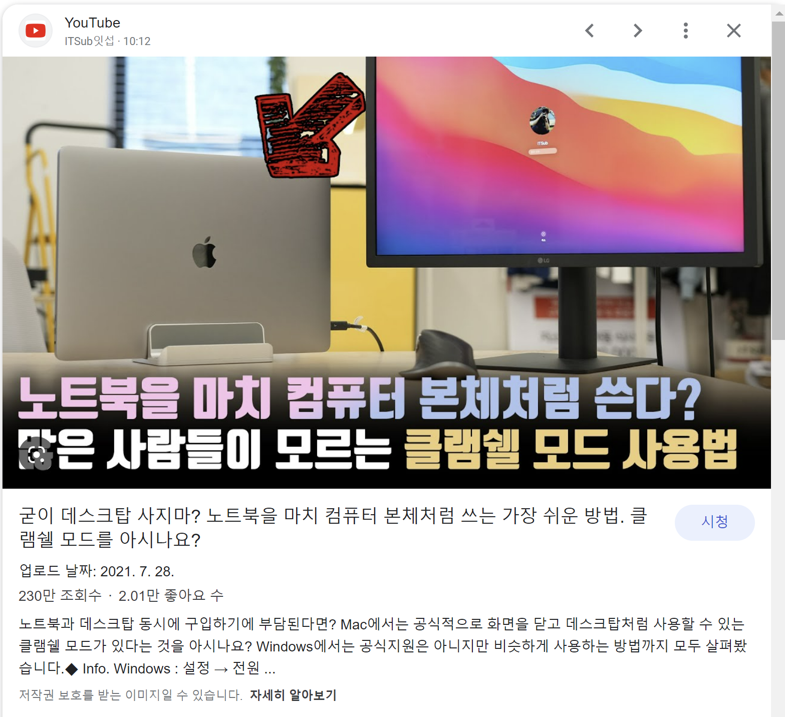 하지만 저는 가격대 같은 수치적(숫자) 문제보다도 맥북 클램쉘 모드처럼 화면 덮어주고 잠자기 사용하는 유저들처럼 사용하려고 하였습니다.