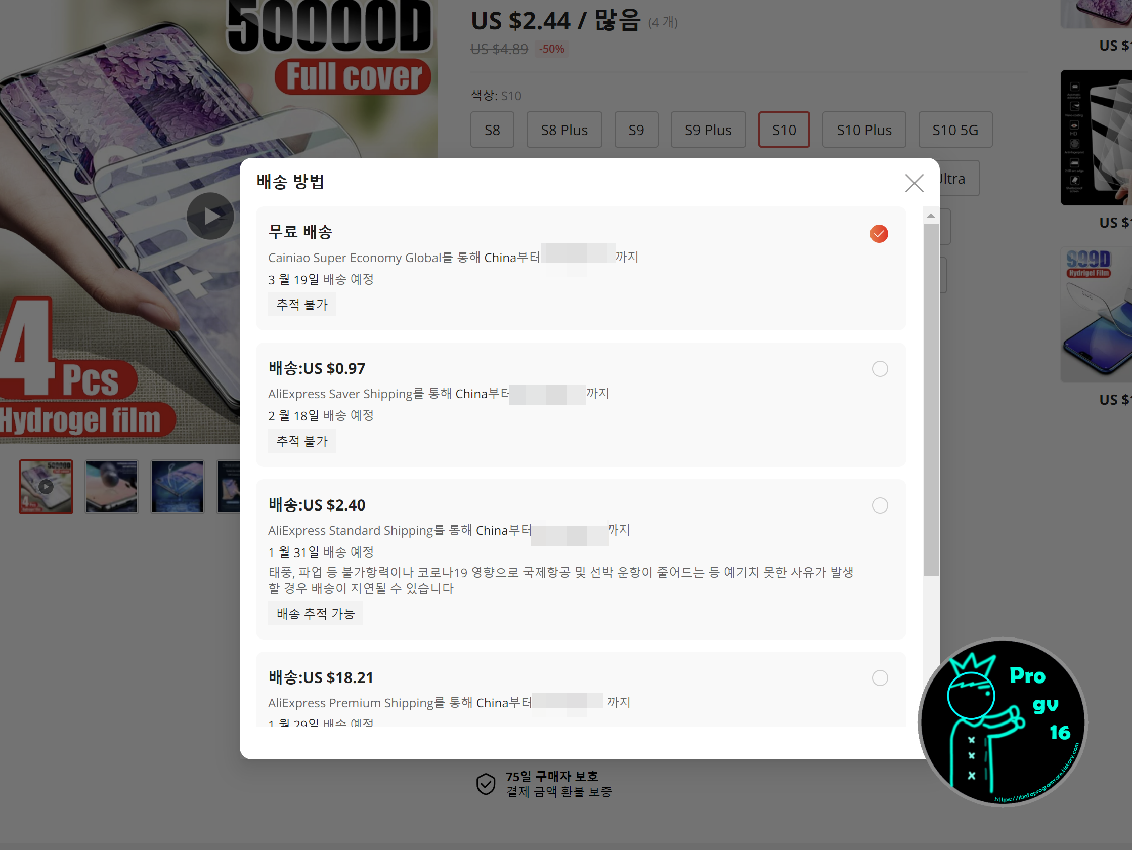 그래서 다양한 선택지가 주어진다면 어디 배송사인지도 모르고 자세한 정보를 모르는 즉, 랜덤하게 배정되는 챠이나오(Cainiao) 배송 시스템보다는 그나마.. 믿을만하고 국내 통관과정까지 추적이 가능한 Saver Shipping을 0.97 달러 추가로 내더라도 골라서 같이 결제하게 되었습니다.