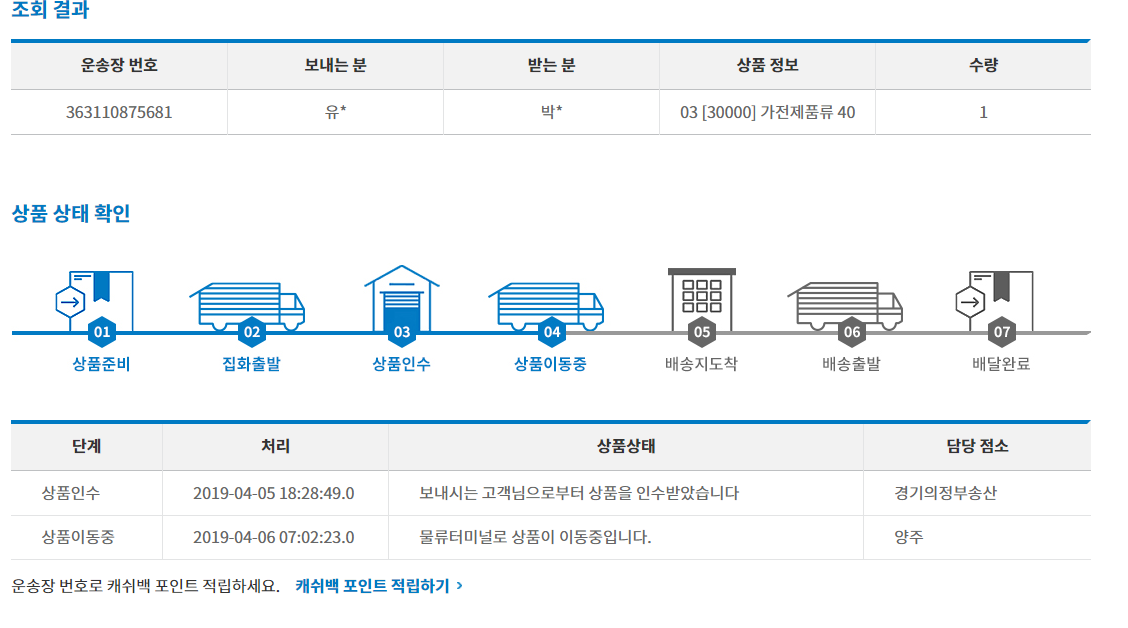 그래도 일단 A/S 보내고 택배 진행상황을 보고 있는 중이다.
