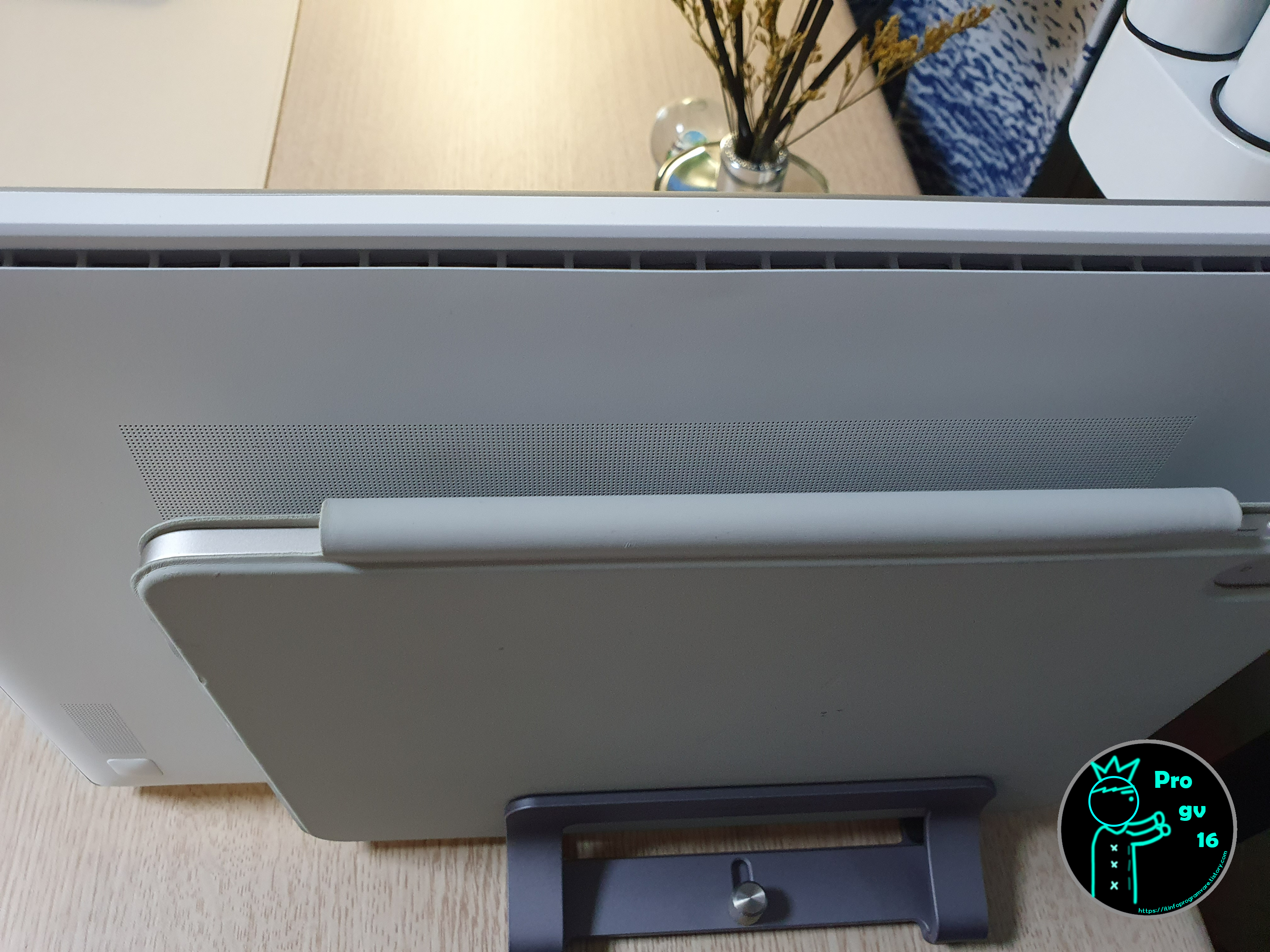 노트북과 수직거치대의 간격을 거의 최소로 하여 깔끔하게 보이려고 타이트하게 맞추는 경우 꽤 많이 볼 수 있습니다. 우리가 선정리 할때도 선에 무리가거나 뜯어지지 않게 적당하게 묶고 정리하는 것처럼 노트북의 경우도 수직거치대와 노트북에 종이 1장도 안 들어갈 정도로 너무 세게 물리면 안 됩니다.