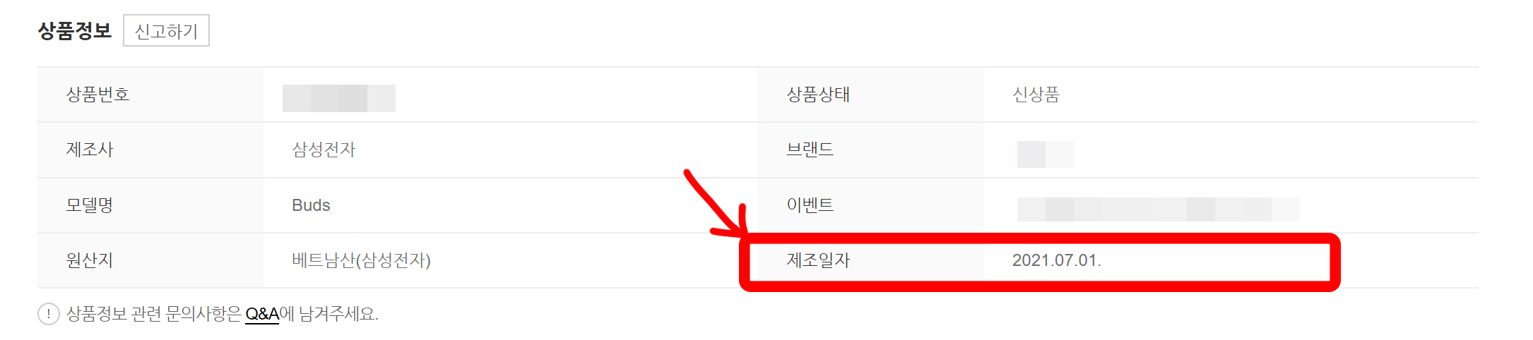상품정보에 기재되어있는 제조일자 2021.07.01이 판매하고 있는 갤럭시버즈의 최소 제조일자를 적어둔 것이 아니라 아직도 저 날짜에 제조된 제품을 판매하고 있는지는 몰랐네요. 최근거받아도 배터리타임 및 수명 걱정이 되는 게 무선이어폰 종류들인데 말입니다.