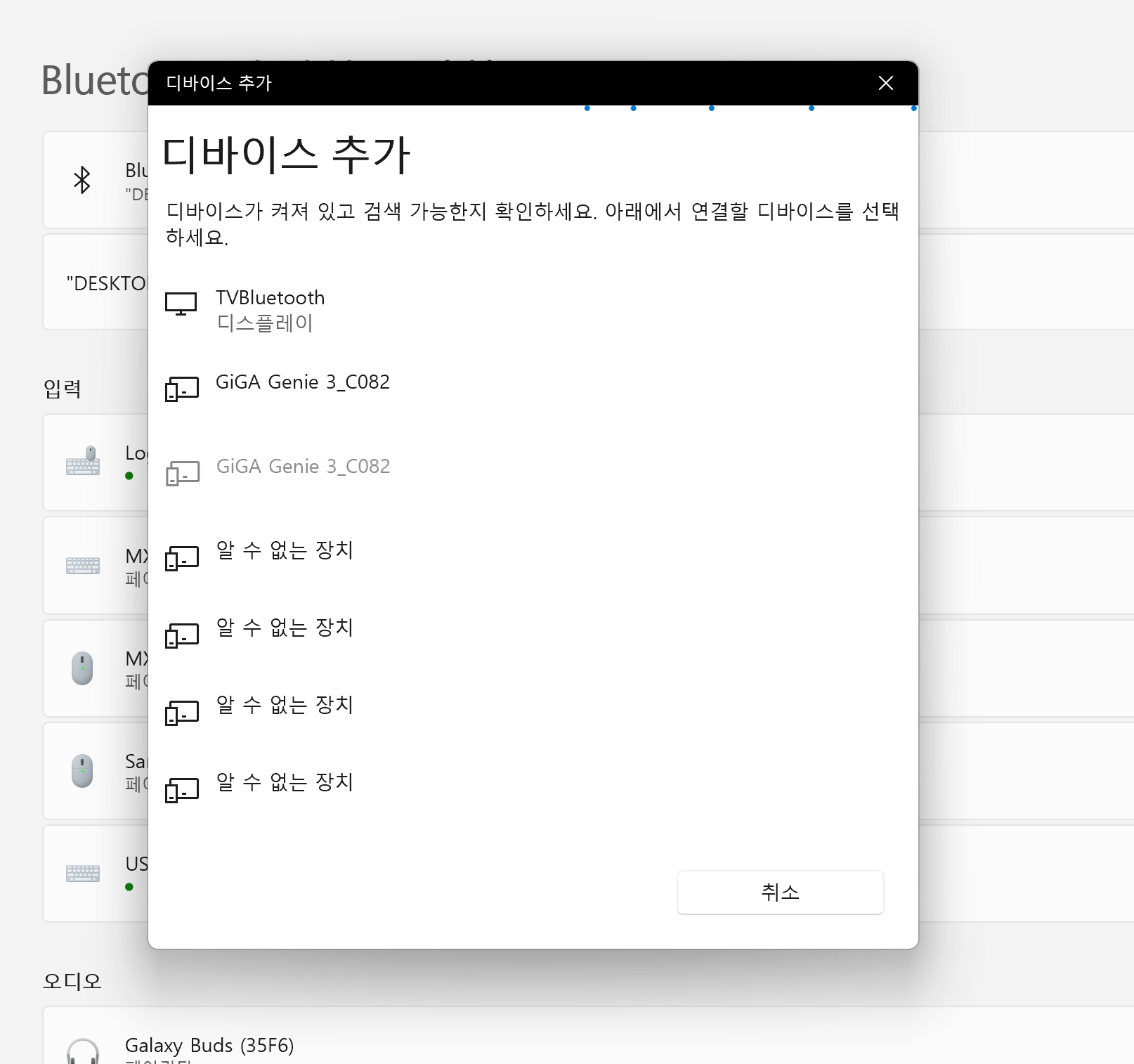노트북에서 새로운 장치 (블루투스 이어폰, 마우스, 키보드, 기타 장치 등등)들을 블루투스 장치에 추가하려고 할때 잘되던 블루투스 검색이 갑자기 "알 수 없는 장치" 들로만 도배되어서 이상한 경험을 한 적이 있습니다.