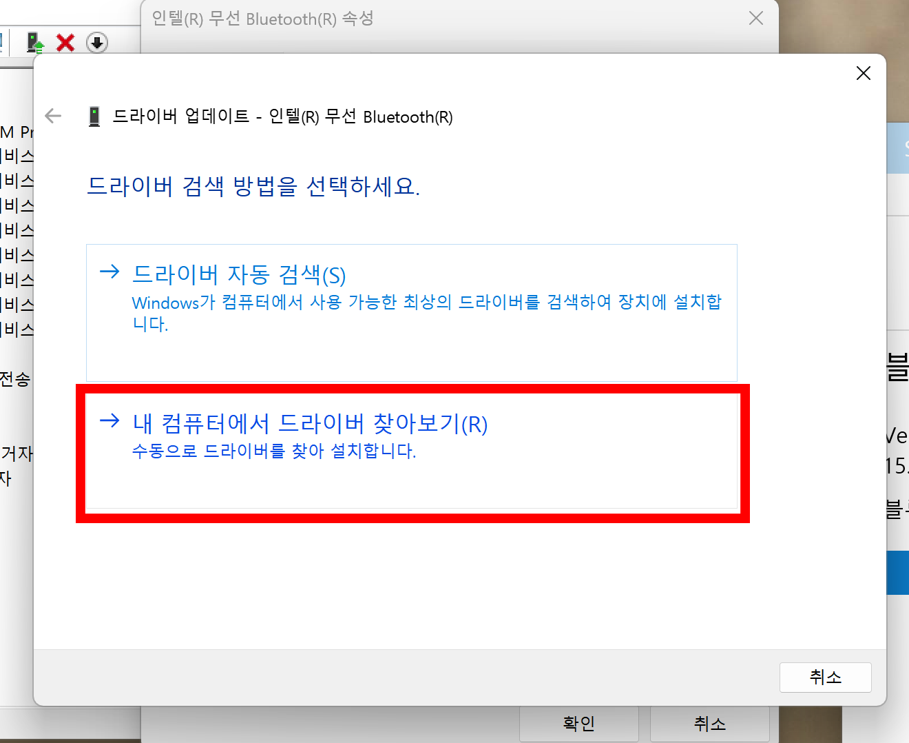 내 컴퓨터에서 드라이버 찾아보기 항목을 선택합니다.