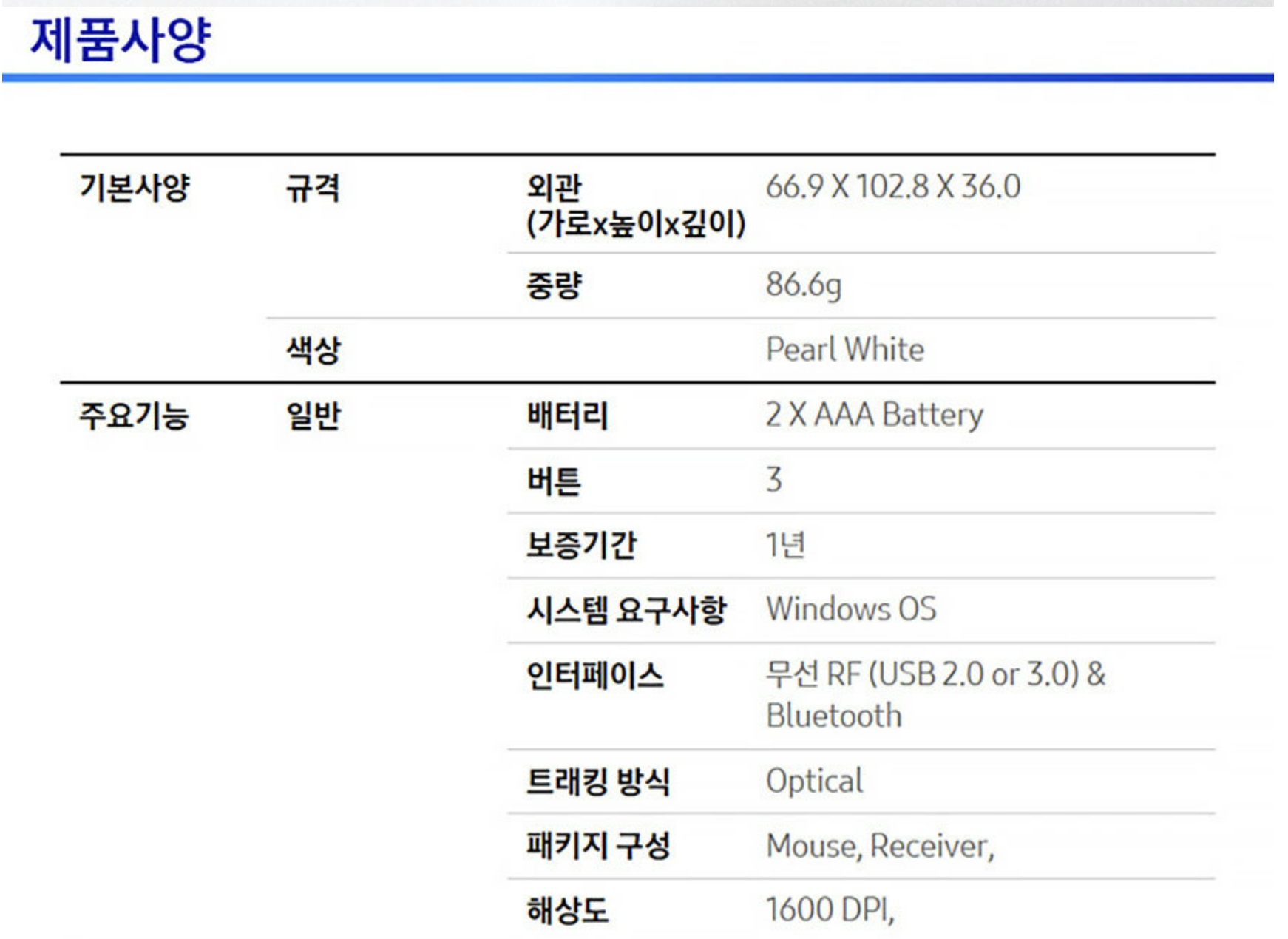 정말 마우스 본연의 기능 그 자체에 블루투스 기능이 추가 되어있는 것으로 보입니다.
