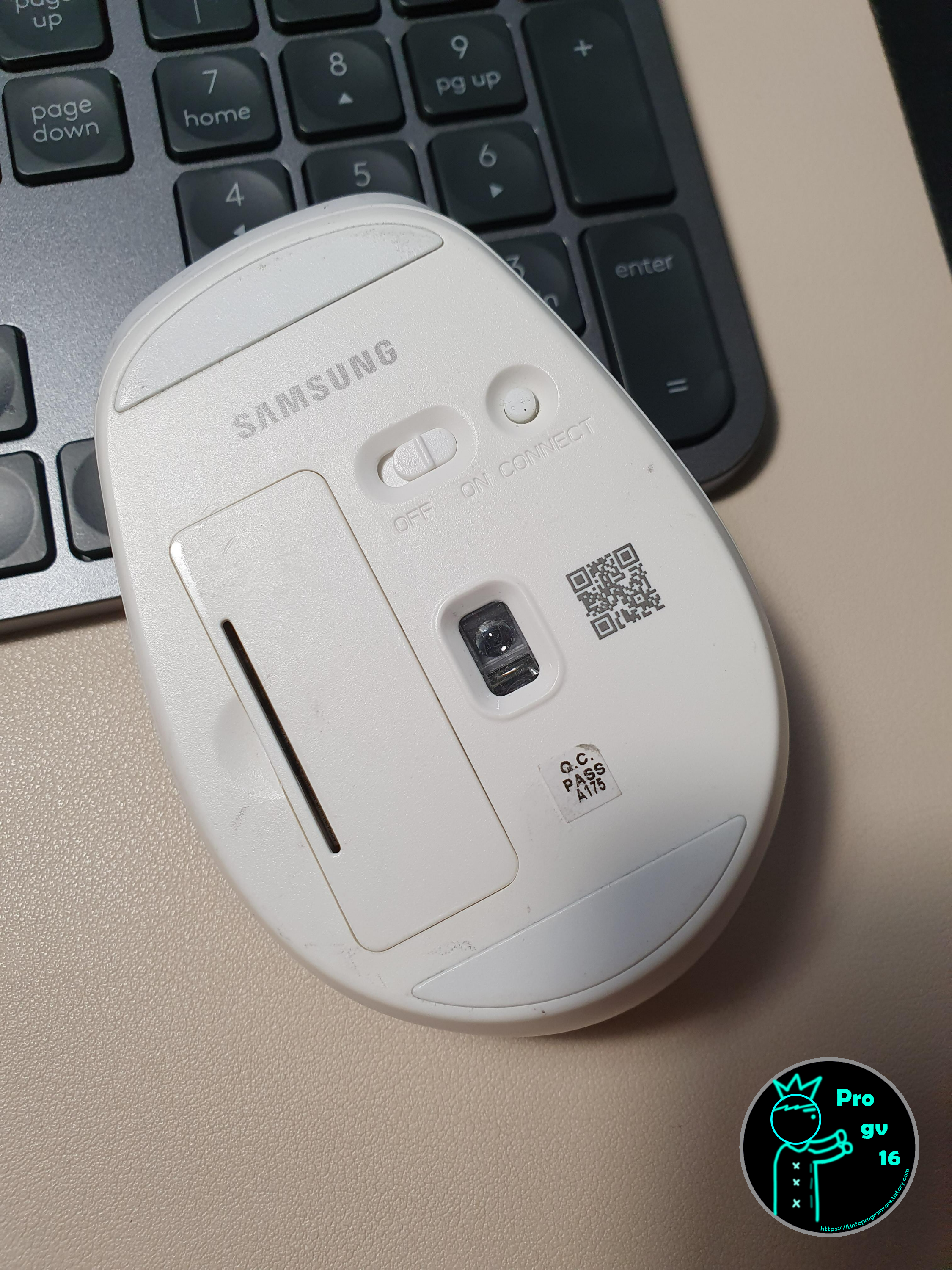 마우스 크기는 호불호 갈릴 만한 사이즈는 아니며 딱히 호불호 갈리는 형태도 아닌 것 같았습니다. 크기에 대한 느낌을 말해보자면 휴대성을 고려한 무선 모델이다 보니 컴팩트한 사이드에 가깝습니다. 물론 로지텍의 MX ANYWHERE 시리즈와 비교하자면 삼성 마우스가 약간 크기는 합니다.