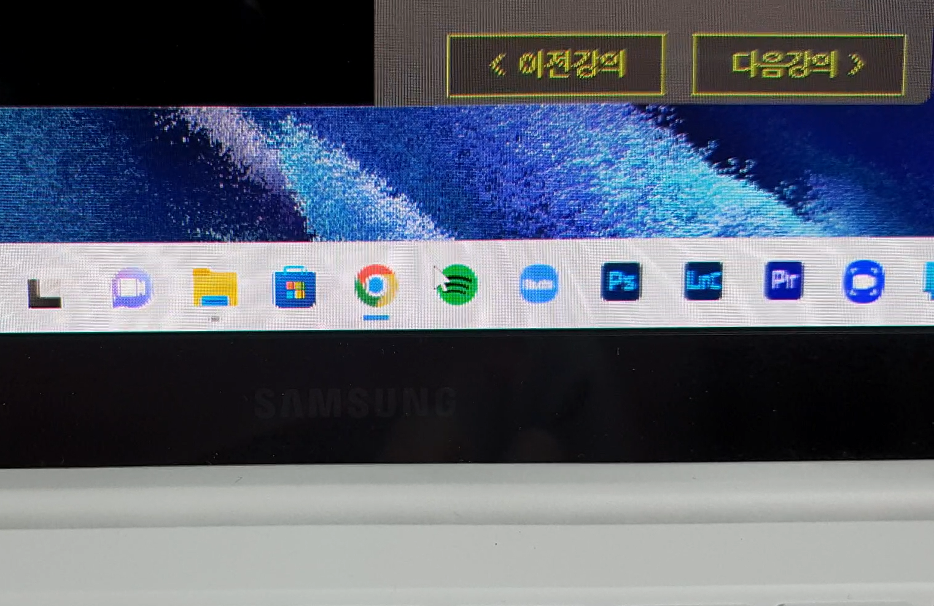이러다가 영구적으로 고장 나는 게 아닌가 싶어서 놀란 나머지 추후에 A/S 받을 수도 있겠다 싶어서 영상도 같이 촬영해 놓았습니다. 갤럭시북에 그래픽 표현 깨짐 문제가 발생하시는 분들을 아래 영상과 비교해 보시는 것이 도움이 될 수 있을 것 같습니다.