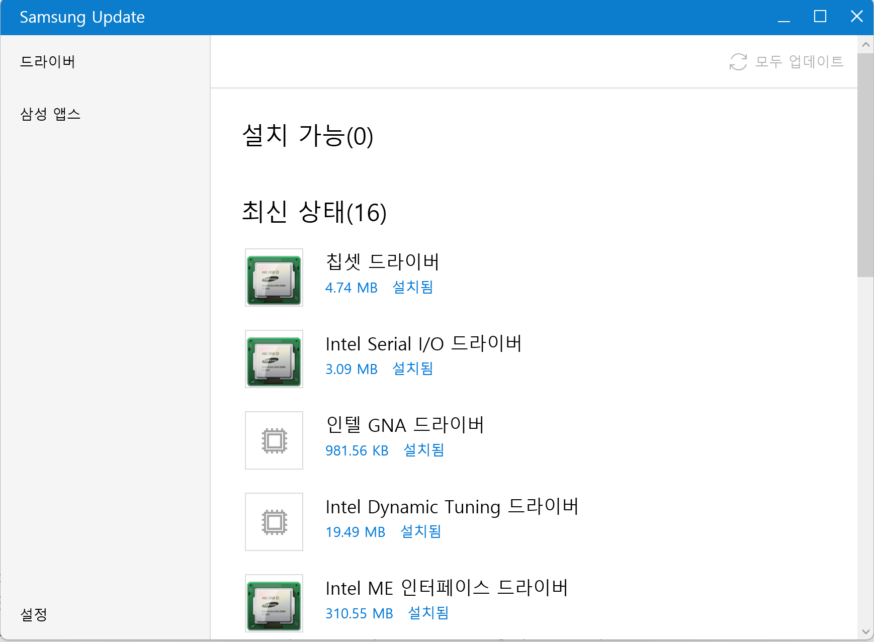 다만, 하드웨어 문제가 아닌 것을 알았는데 굳이 센터까지 찾아갈 이유는 없을 것 같았으며 기타 소프트웨어적인 업데이트 모두 최신 버전으로 다 마친 상태입니다. (Windows Update 및 Samsung Update 포함)