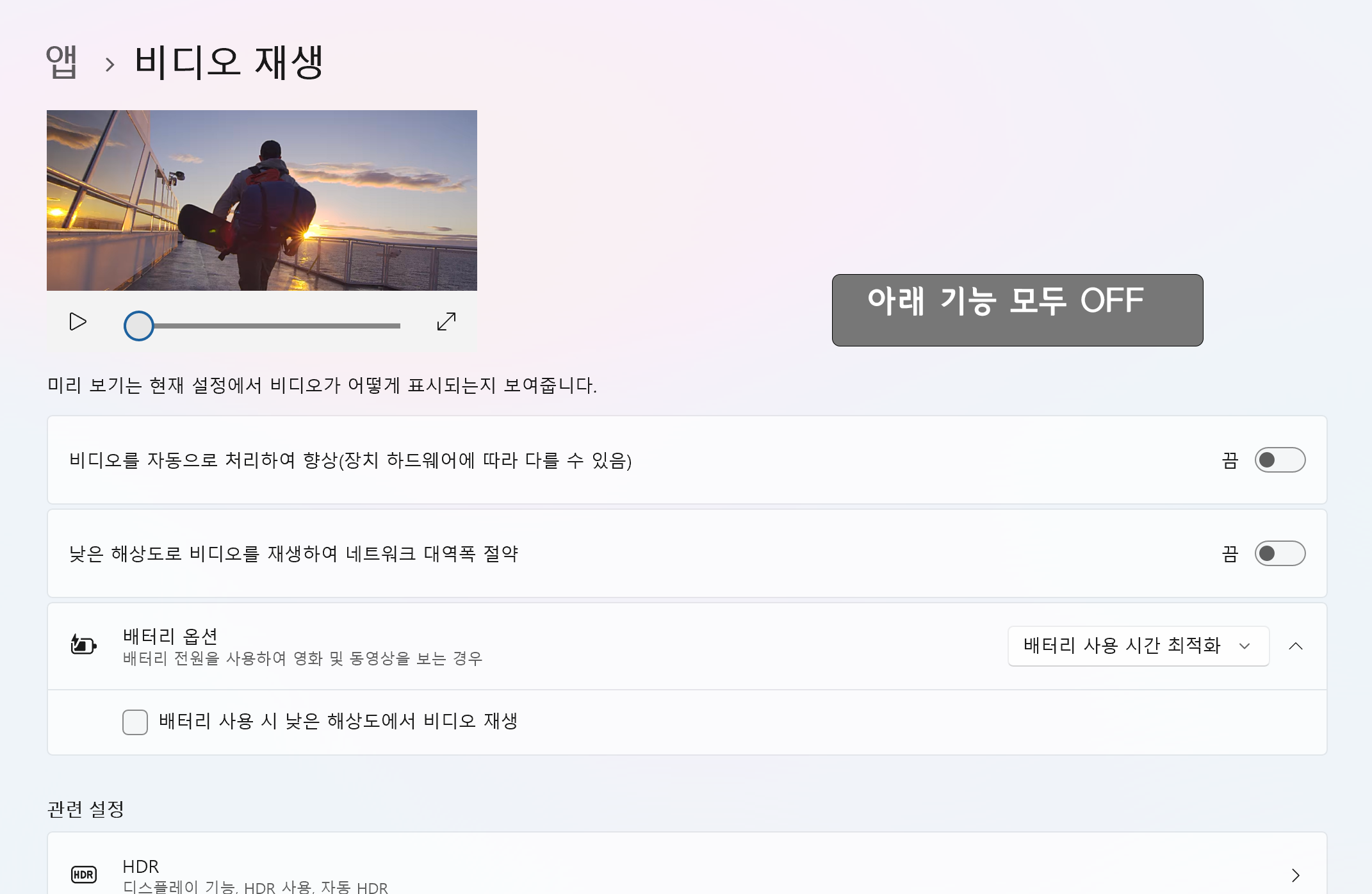 3. HDR도 문제없고 재부팅 후 동일 증상이면 A/S방문해야 함
