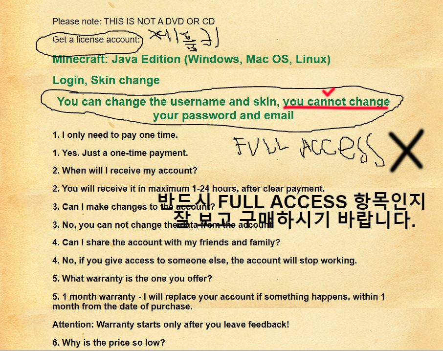 이 모든것들이 불안하거나 믿어지지가 않는다면 마인크래프트 정식 홈페이지 minecraft.net 에서 정가로 정품상품 구매하는 것을 추천드립니다.