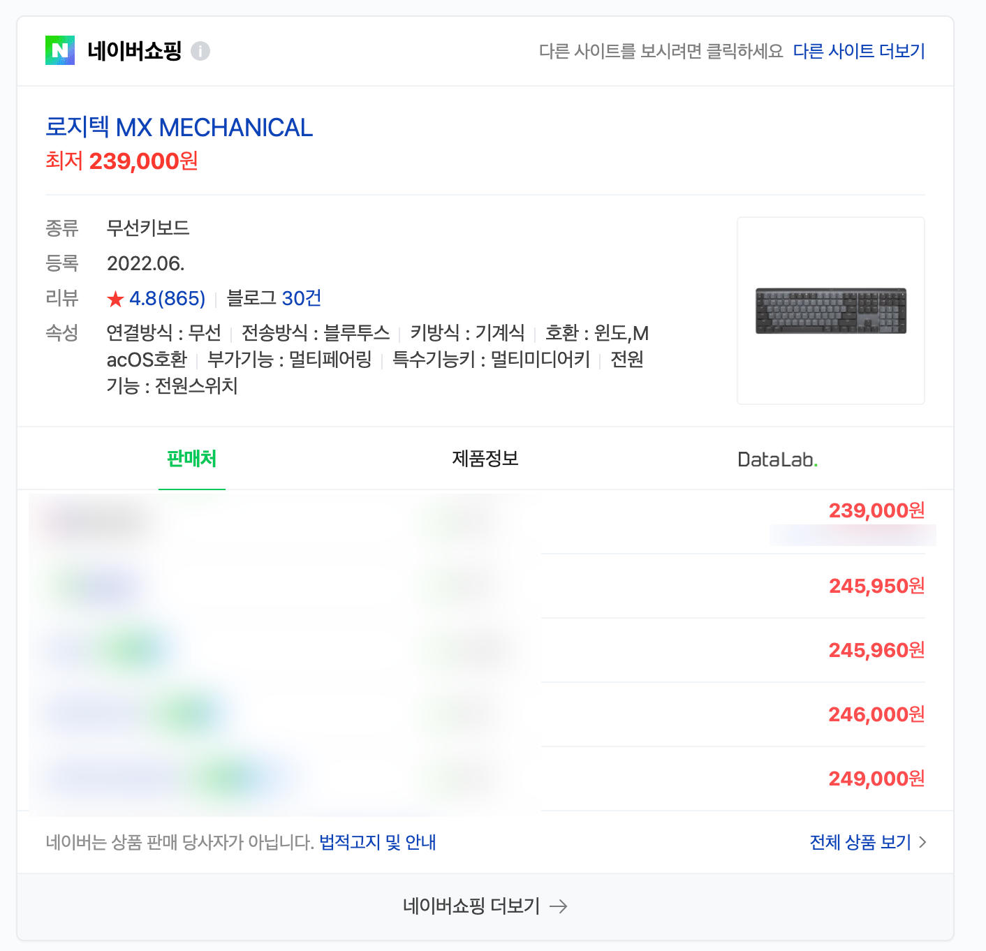 그런데 저소음 기계식 축이 아닙니다. 단순히 로우 프로파일(Low Profile)의 형태였으며 가격대도 매우 높았습니다. 물론 일반 기계식 키보드보다 저소음은 맞겠지만.. 개인적으로 가격 대비 성능에서 큰 메리트를 모르겠으며 여러 후기들을 보아하니 지금 당장은 구매에 조금 어렵겠다고 느껴서 MX KEYS를 현재도 계속 사용해오고 있습니다.