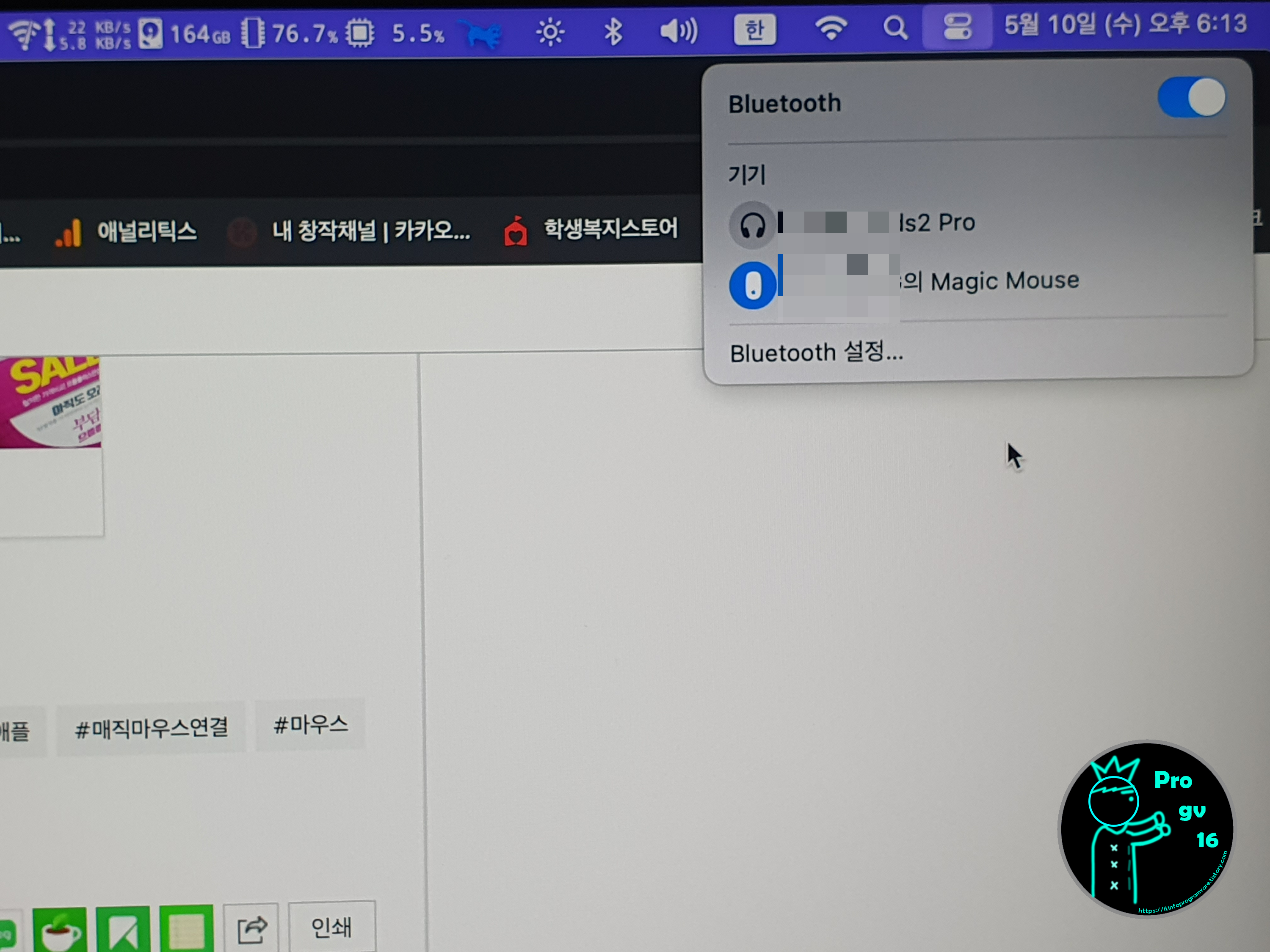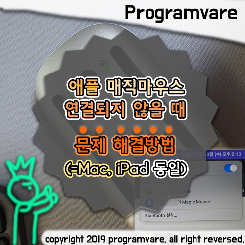 애플 매직마우스를 새로 구매하거나 전원을 on/off 하였을 때 바로 연결이 되지 않아서 당황스러운 적 있으실 겁니다.