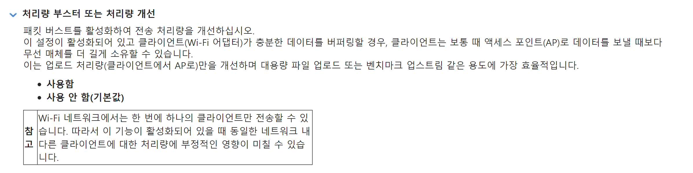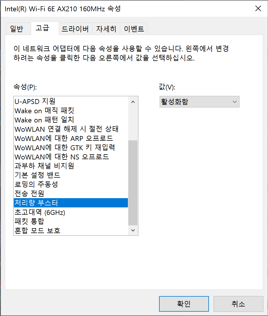 처리량 부스터의 경우는 활성화함으로 변경해주세요.