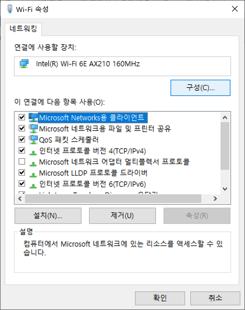 다음은 윈도우10 기준으로 와이파이 구성을 변경하는 방법입니다. 한마디로 와이파이 어댑터에 대한 기본구성설정을 변경하는 것입니다.