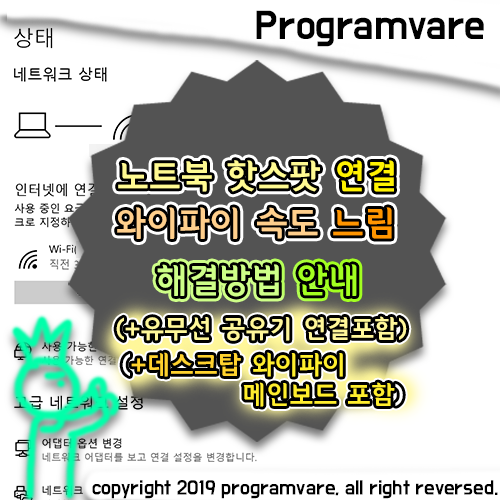그래서 핫스팟 연결할 때 노트북 와이파이 인터넷 속도가 지속적으로 느릴 때 해결방법을 알려드리고자 합니다.