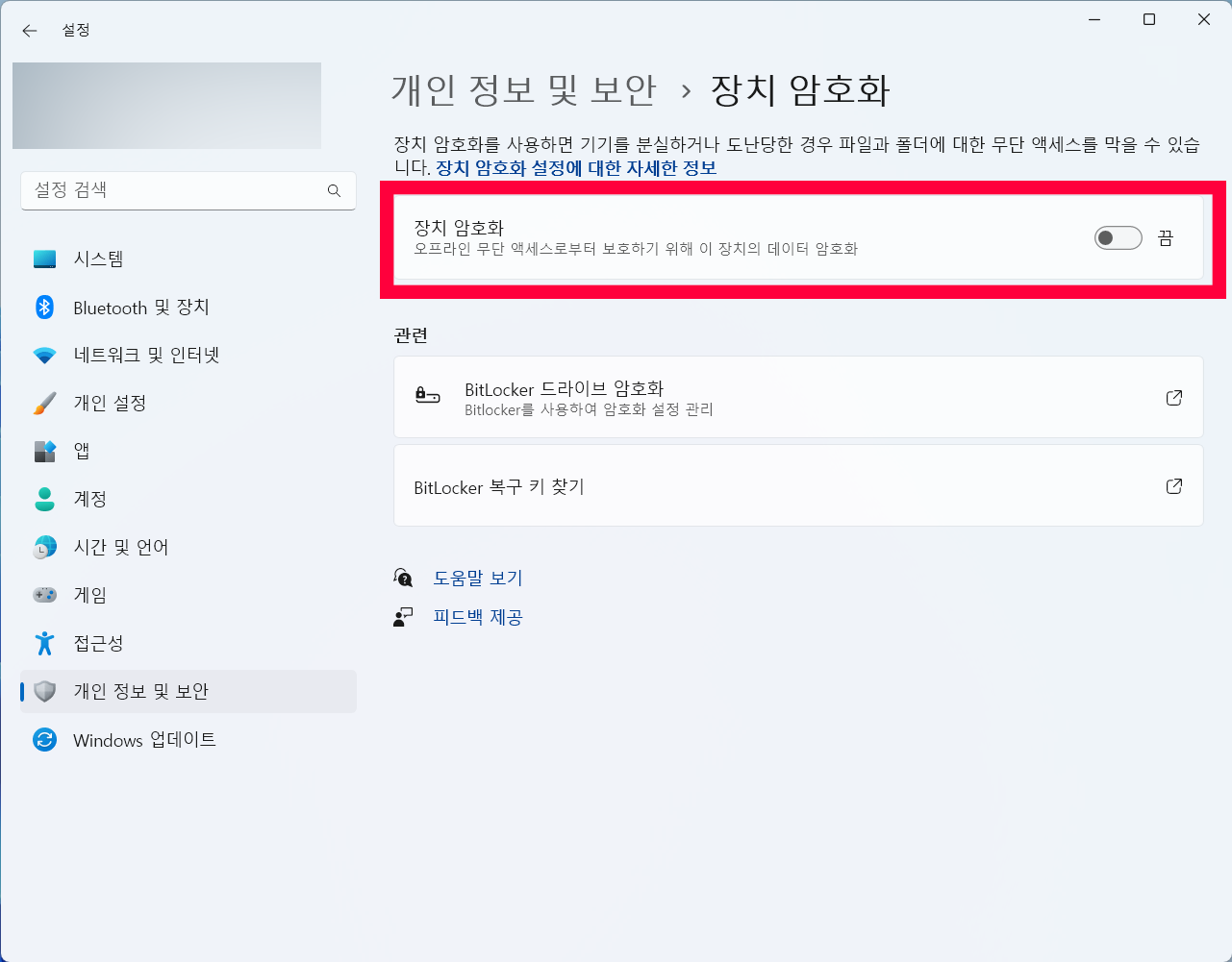 A: 윈도우10 이상 운영체제에서는 사용자 파일 및 운영체제의 보호를 위해서 함부로 포맷(윈도우 설치 USB를 이용한 클린설치 등)을 할 수 없도록 암호화 기능 켜짐이 기본값으로 설정되어 있습니다. 한마디로 윈도우 설치할 때마다 암호화가 자동으로 켜짐으로 되어 있습니다.