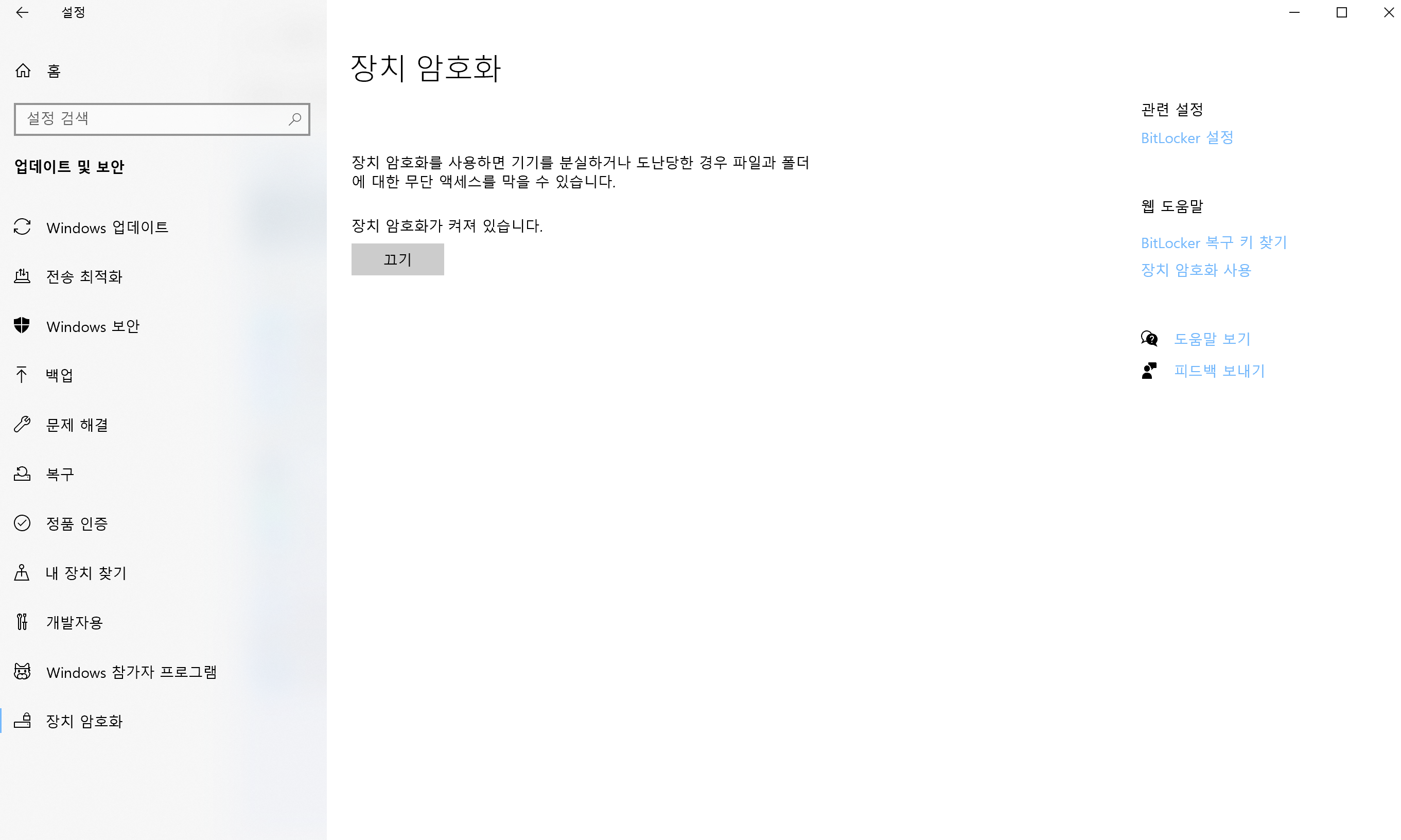 (Windows 10의 경우: 설정 -> 업데이트 및 보안 -> 장치 암호화)