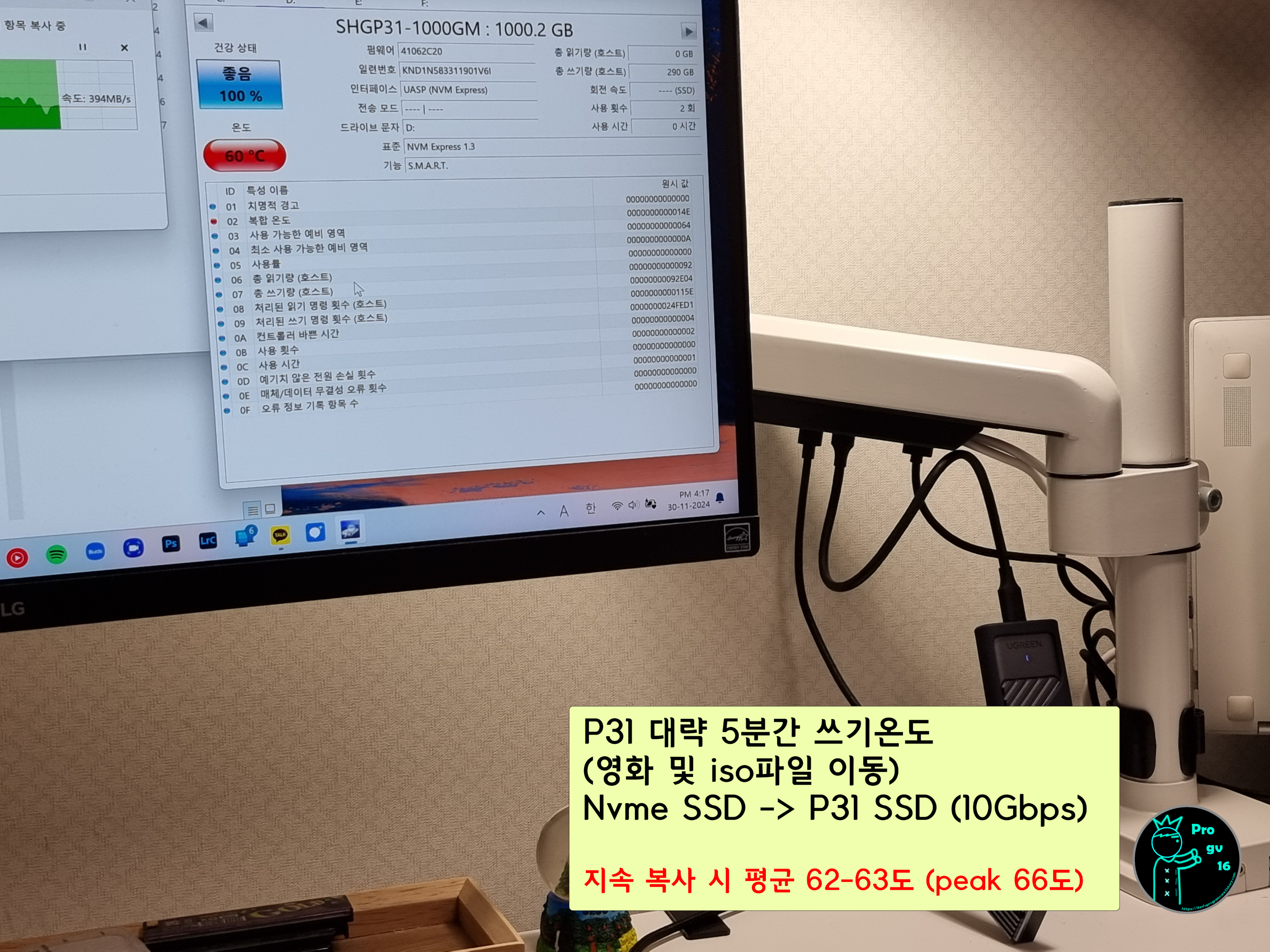 "P31 SSD와 유그린 CM559 외장케이스의 조합 -> 호환성 이슈 없으며 최대성능 잘 나온다"