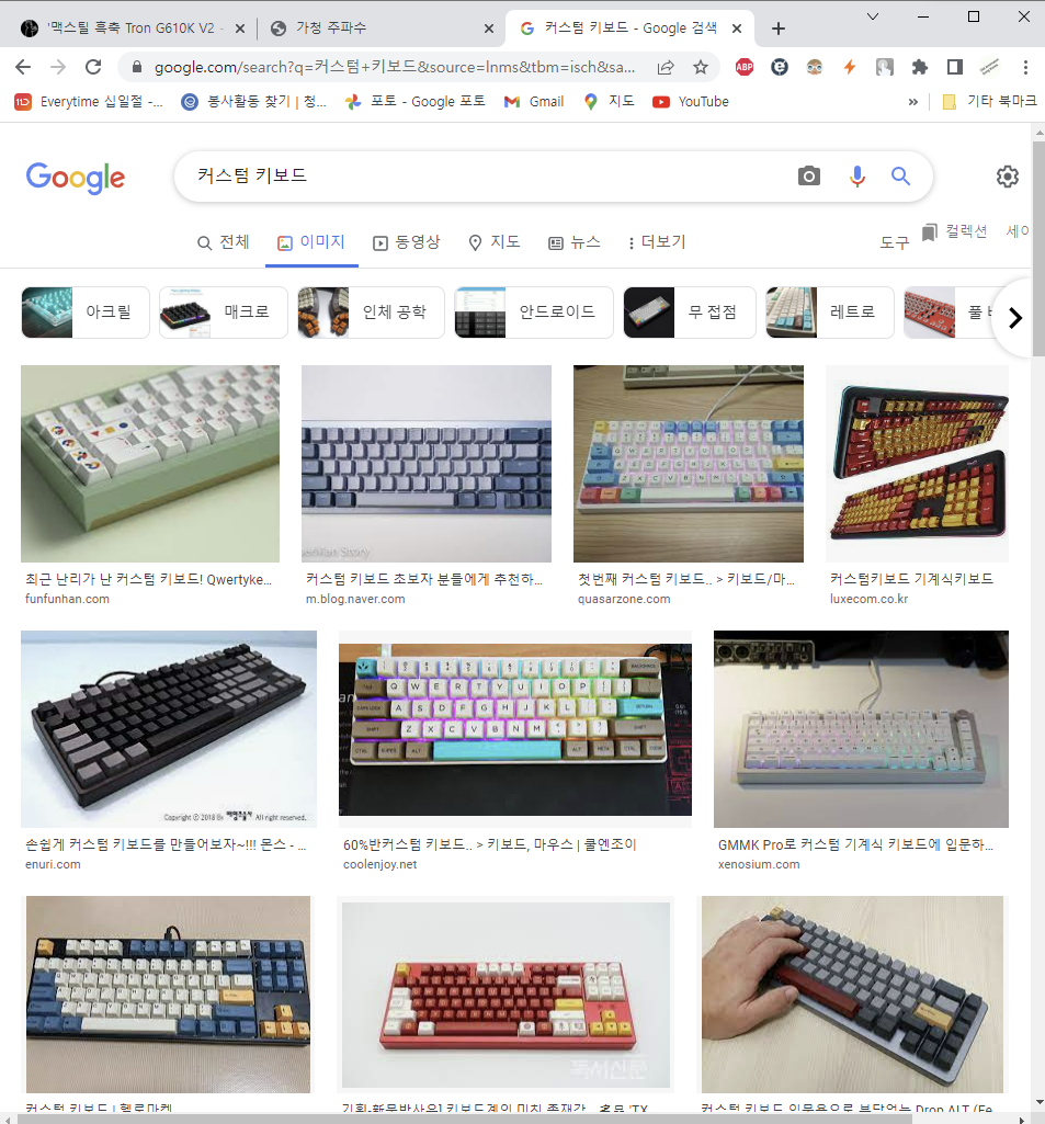 아래 이미지는 구글 검색결과입니다. 각종 기성품 또는 커스텀의 영역에 이미 들어가 버린? 사람들의 키보드 샷을 볼 수 있습니다. 이런 것들을 보면 저도 이 취미에 Enter 하고 싶어지는...