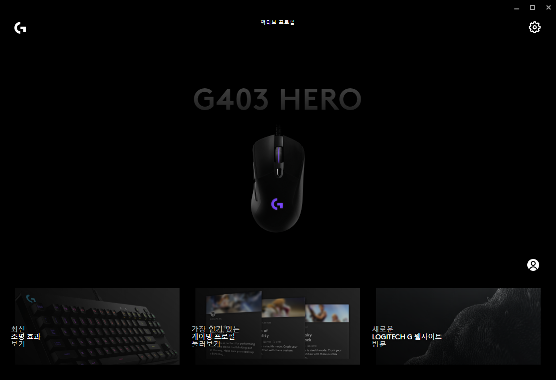 시작화면 / 프로필 이용 시 로지텍 회원가입 필요