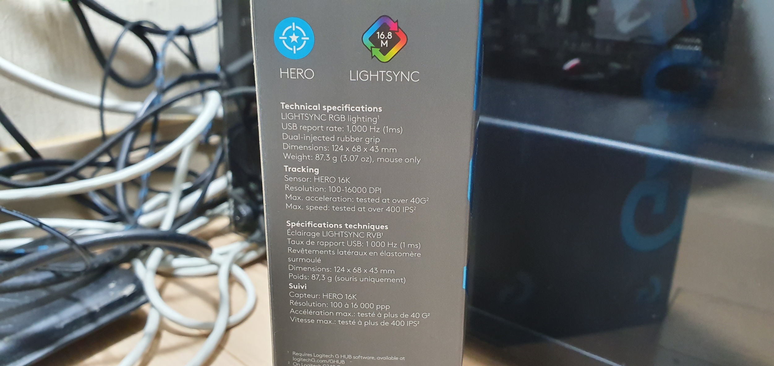 일단 마우스 자체는 87g으로 가벼운 편에 속합니다 (전에 쓰던 G10에 비해서는요)