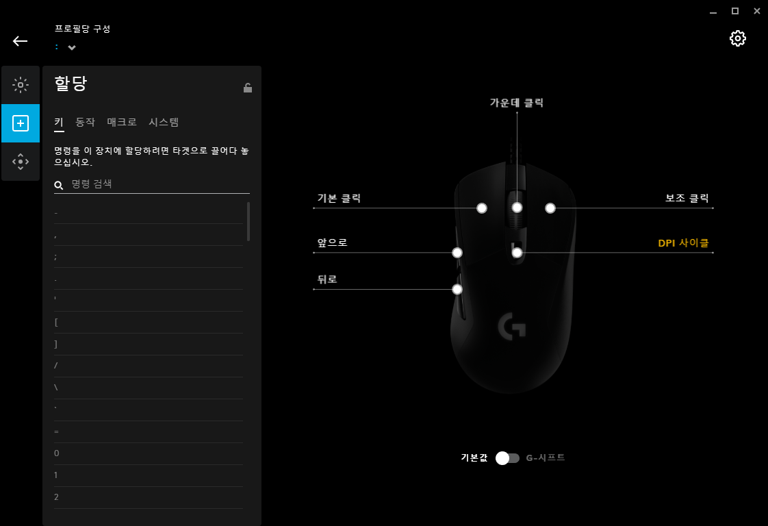 매크로입니다. 특히 게임 시 유용하게 쓰이는 기능 중 하나인데요. 6키 마우스까지는 저의 개인적인 입장에서는 건드릴 필요가 없더군요.