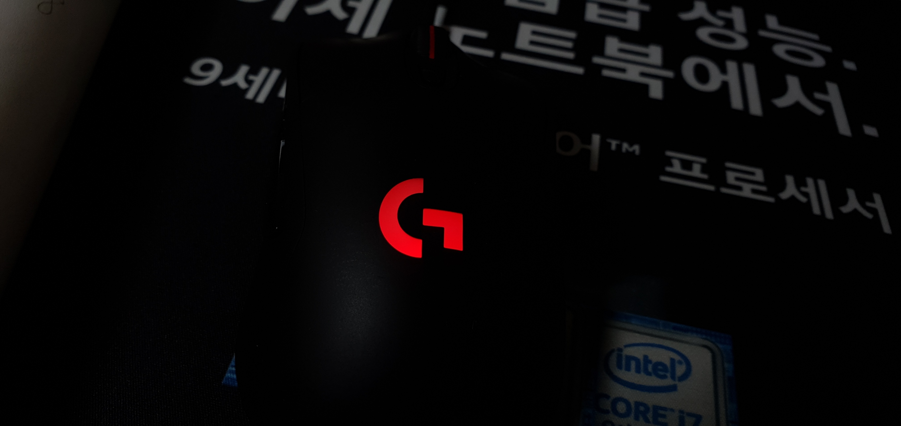 카메라의 조리개를 세팅하여 마우스의 LED 색상을 선명하게 담아내었습니다.
