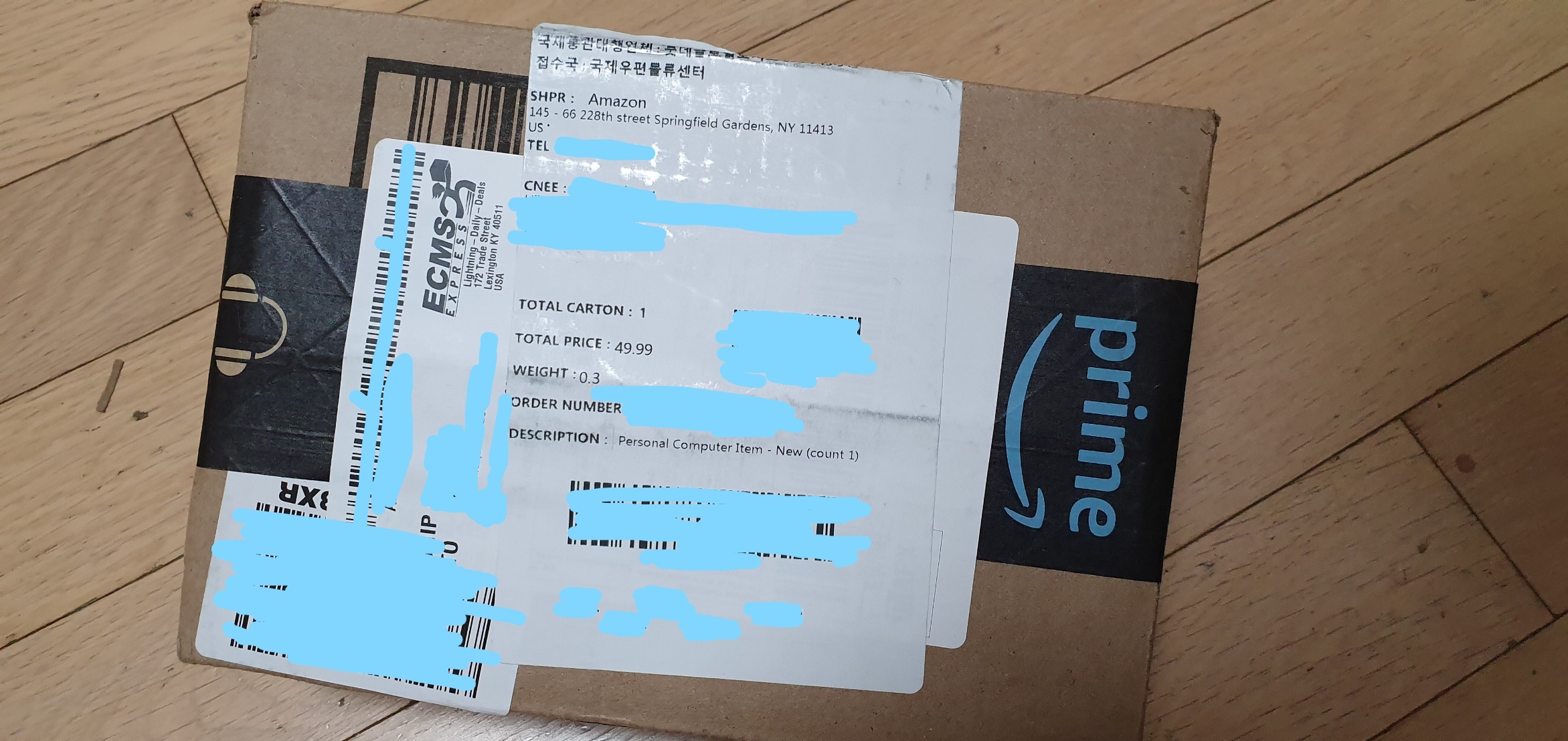 그리고 드디어 택배 도착 (뉴욕--한국 5일 소요)