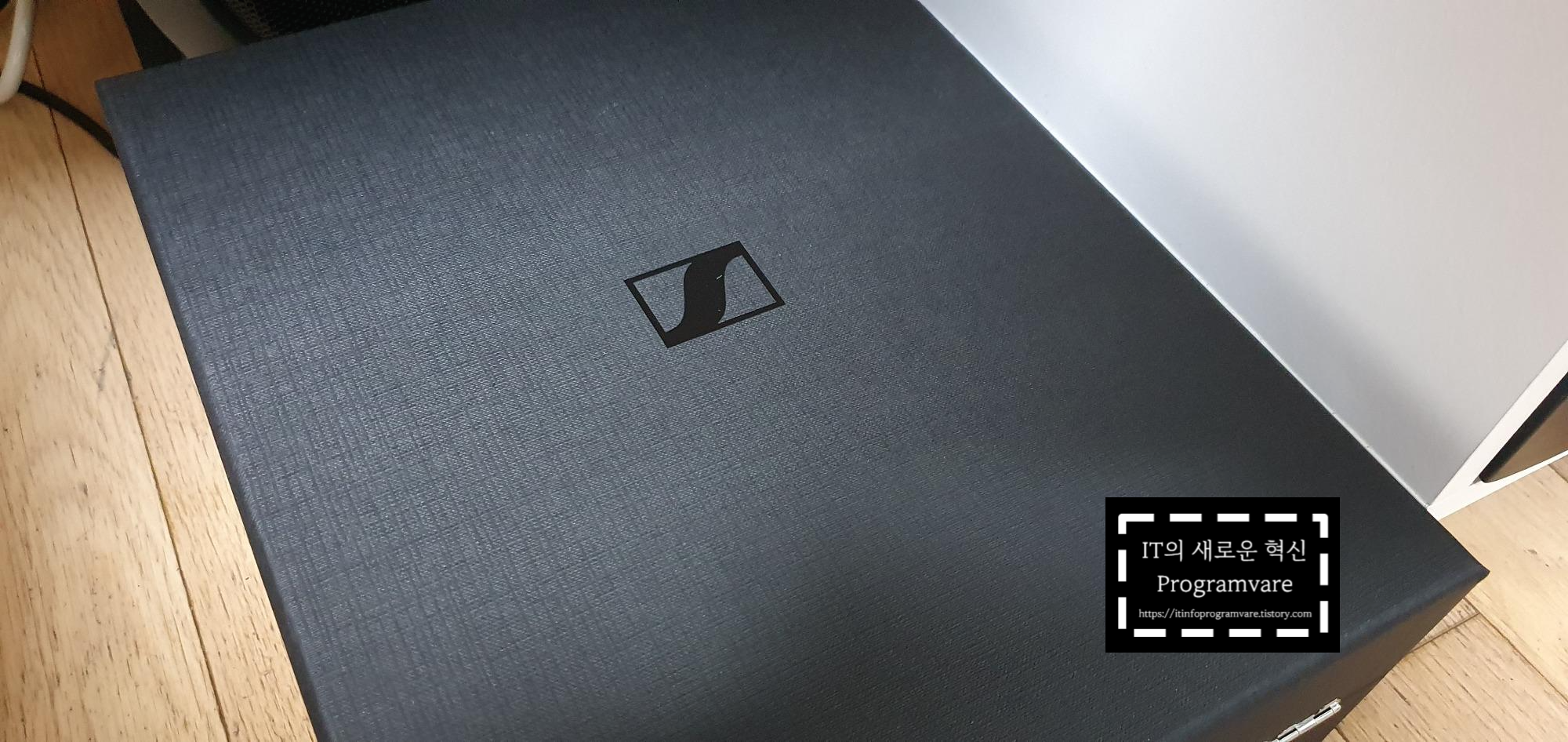 제품의 겉 패키징을 분리해 보면 젠하이저 로고가 박힌 아래와 같은 묵직하면서도 단단한 종이 재질의 박스가 나옵니다.
