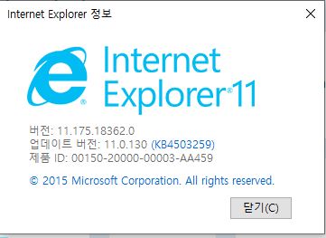 윈도우7 IE11의 최신 버전 업데이트 날짜는 2013년이며 윈도우10 IE11의 최신 버전 업데이트 날짜는 2015년으로 이미 개발 중단된 상태입니다.