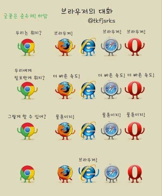 하지만 지금은 웹 표준을 준수하고 빠른 브라우저들이 많으니 다른 브라우저로 이동하시는 것을 권해 드리는 것입니다.