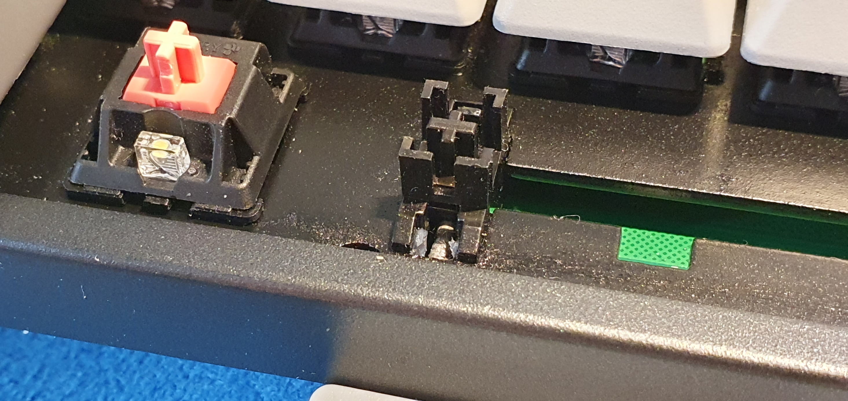 공장 윤활이란: 키보드 공장에서 제작 시 스테빌라이저 부분도 같이 윤활 작업을 거쳐서 출고되는 것.