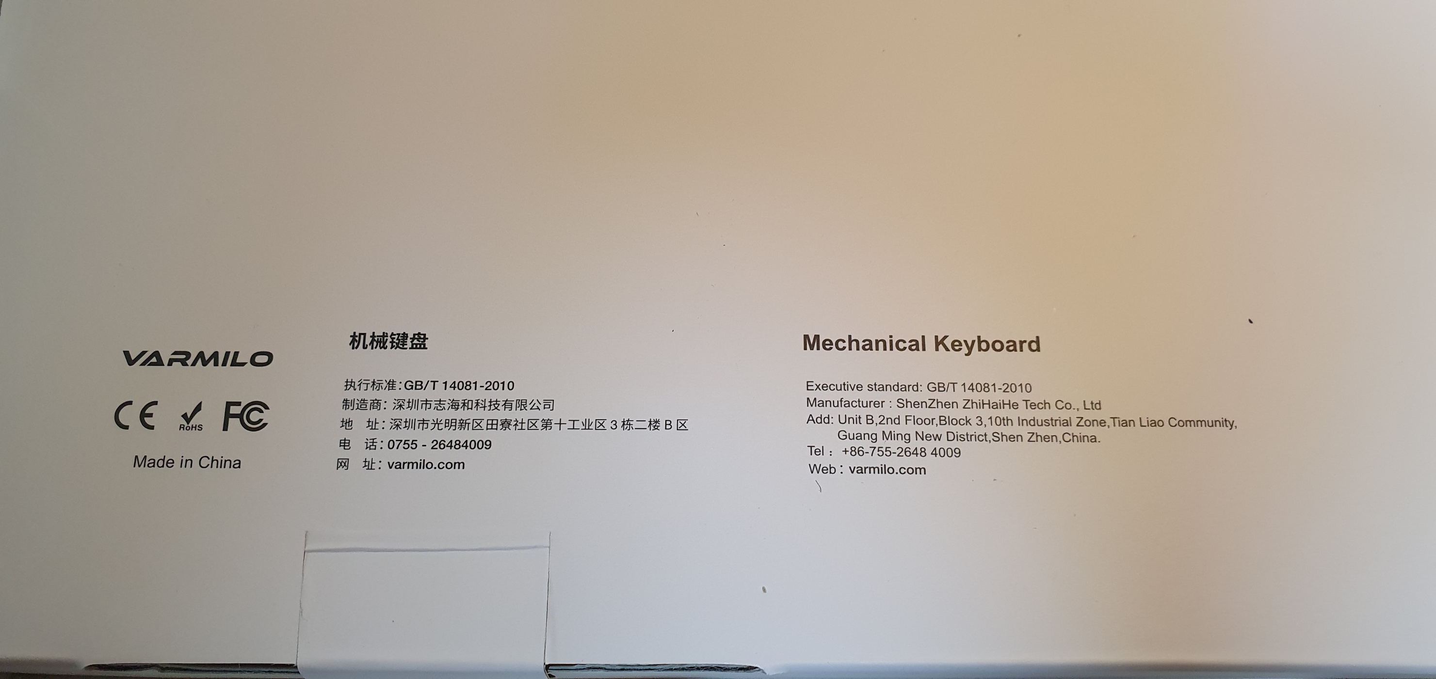 뒷면에는 바밀로 중국 본사 주소가 중국어와 영문으로 기재되어 있습니다.
