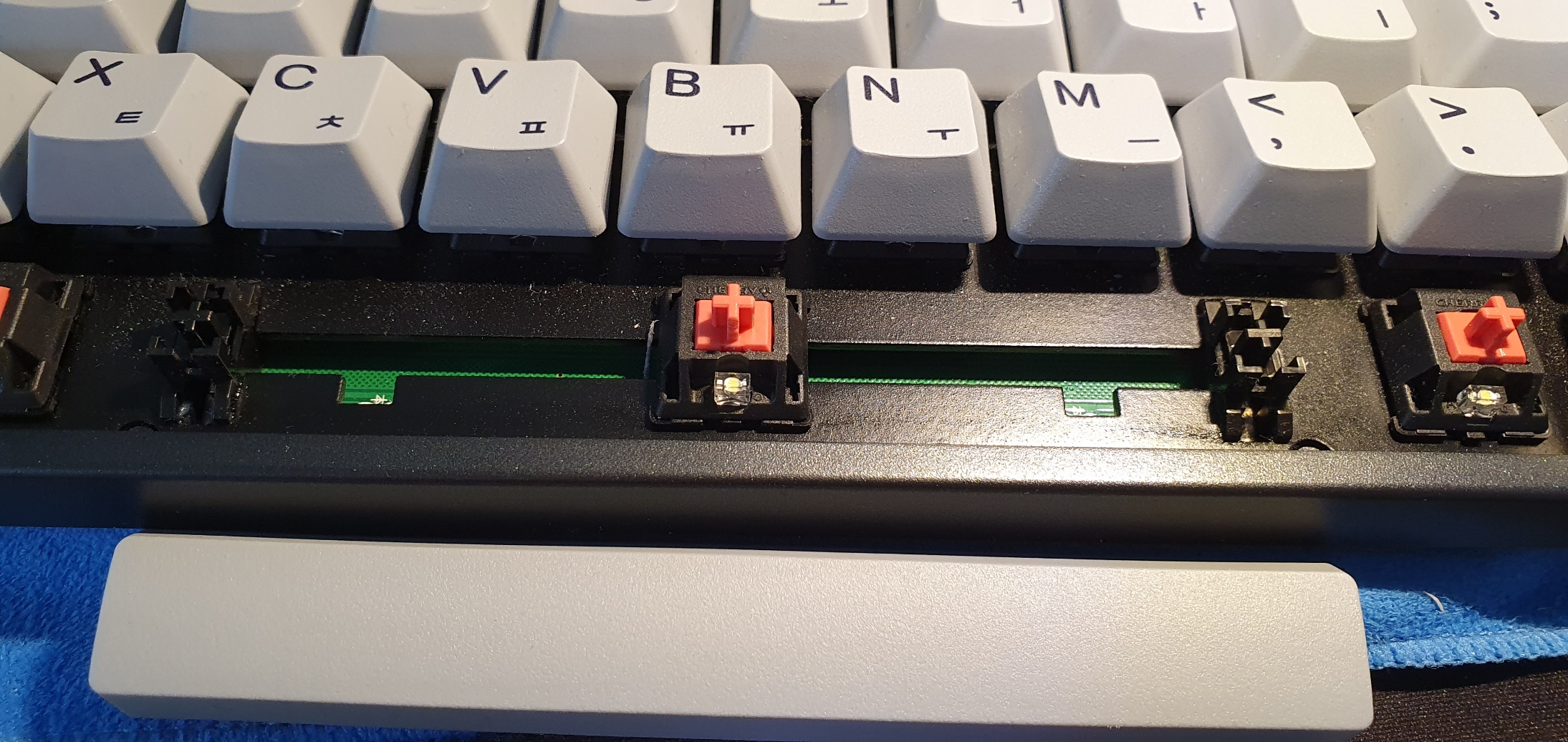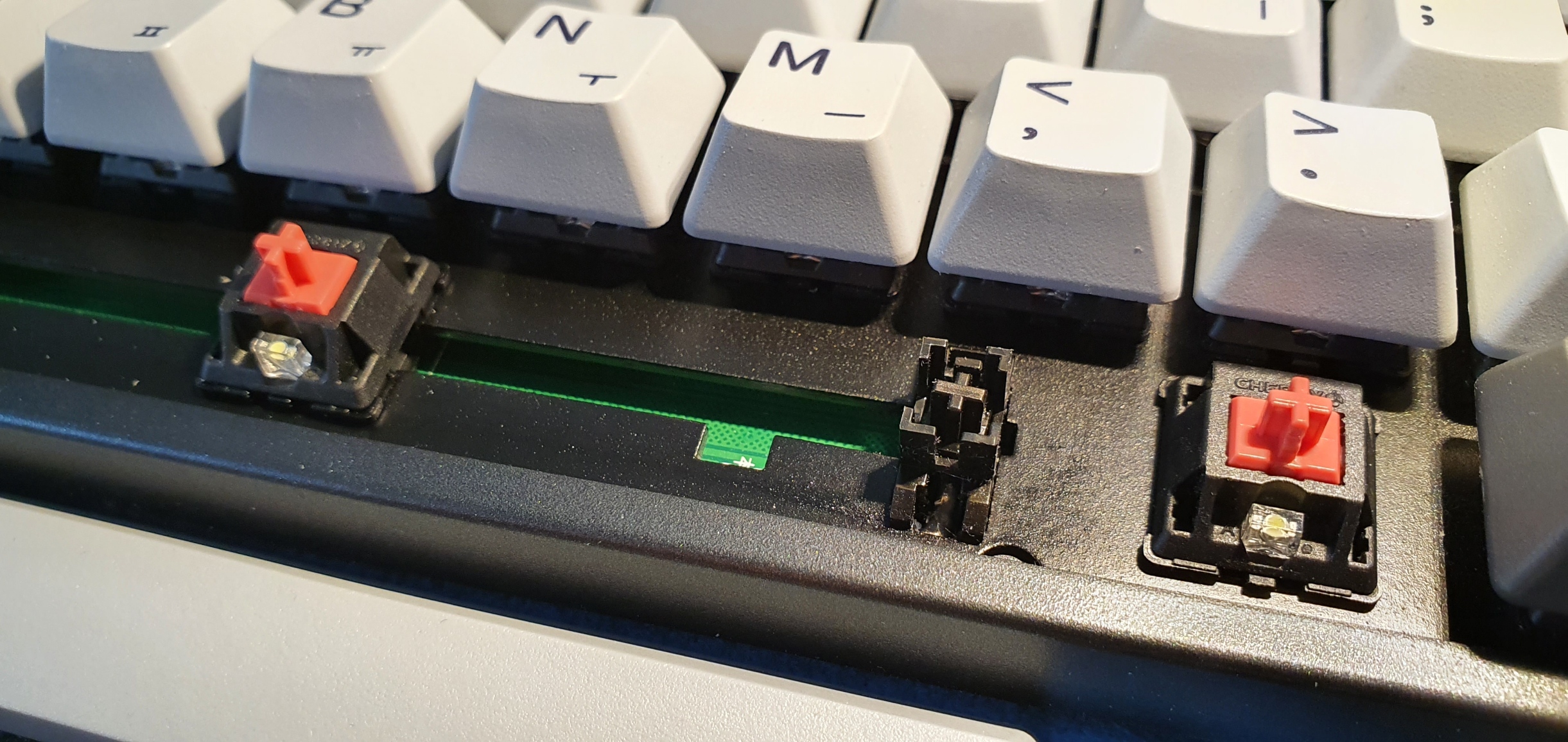 스페이스 바 이외에도 스테빌이 들어간 키들 (좌, 우 Shift, 엔터키, 백스페이스 키) 모두 뛰어난 공장 윤활 상태입니다. 저에게는 가장 큰 장점이었습니다.