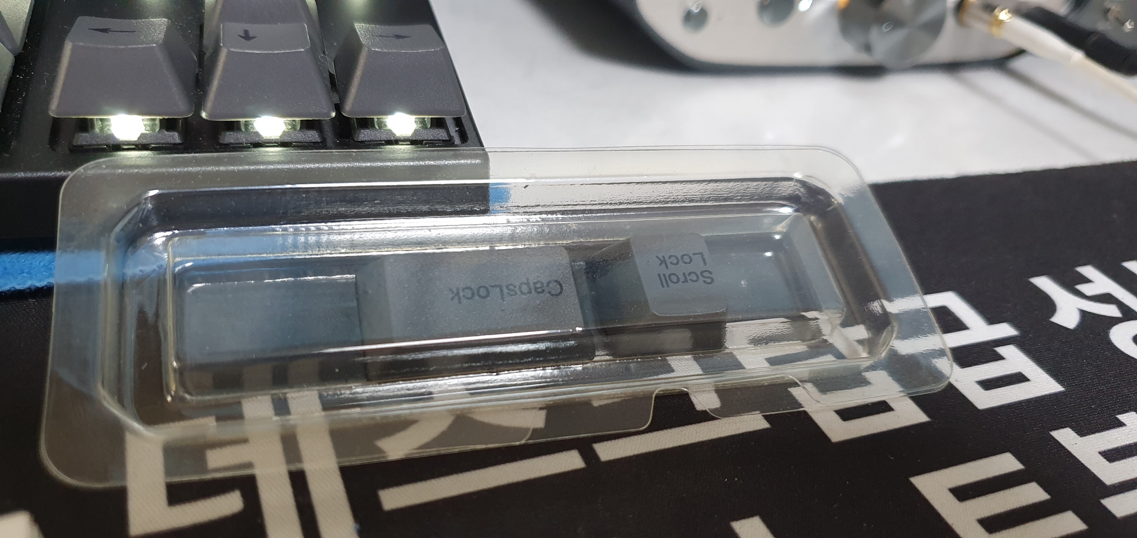 Caps Lock과 Scroll Lock 키들은 LED투과형으로 교체 후 기본 제공되는 플라스틱 케이스에 보관하였습니다.