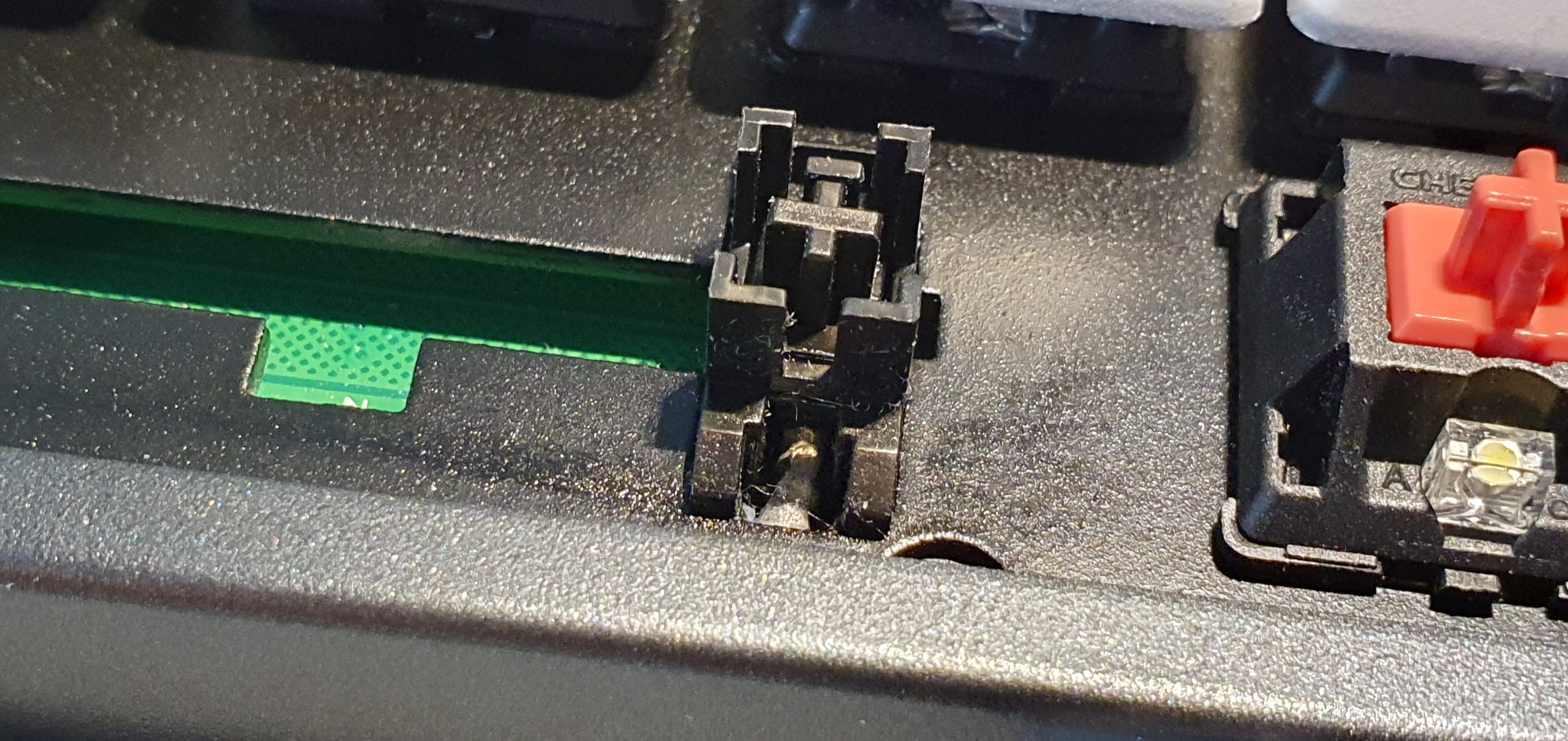 해결법은 키캡을 한번 뺏다가 다시 껴주면 소리는 사라지게 됩니다.