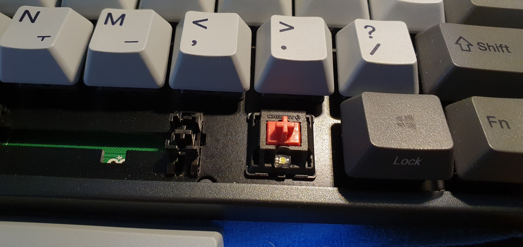 그냥, 키보드 치다가 발생한 키캡의 유격(십자스템에 제대로 고정 안됨)이라고 생각하고 있습니다.