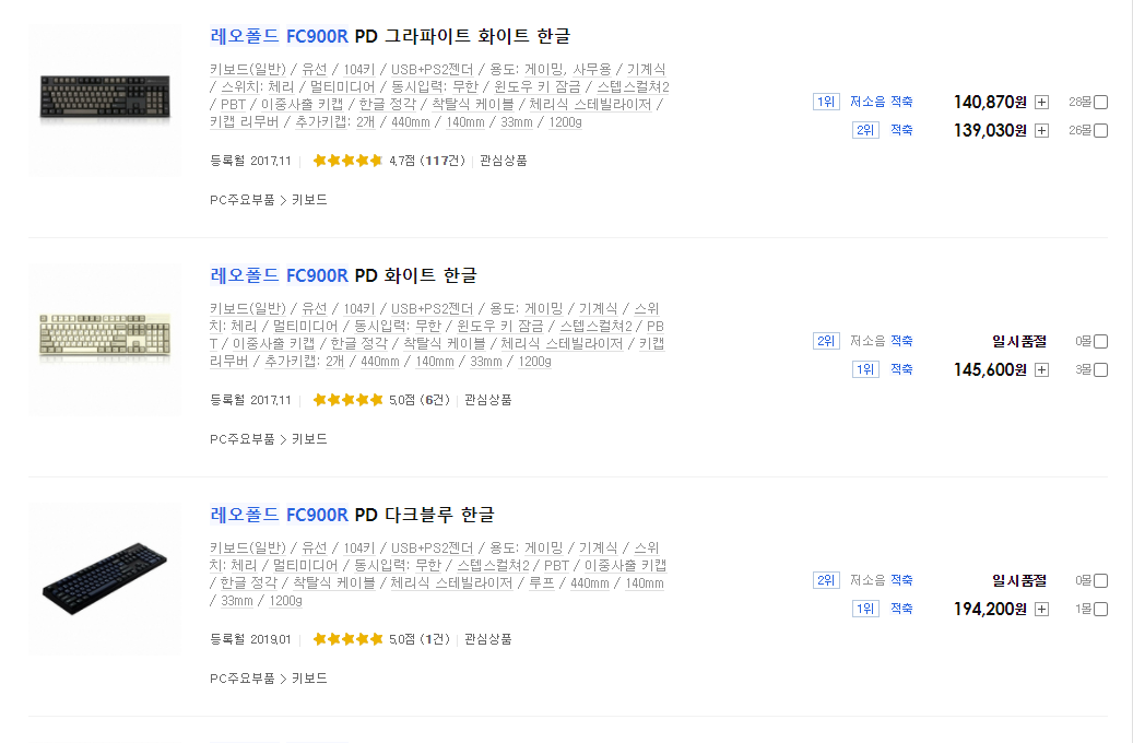 그러나 좋은 대신 기계식 스위치 중에서는 최고가를 자랑하며 이것이 입문자들의 발목을 잡게 만듭니다.