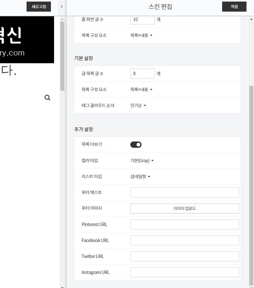 적용을 눌러서 새로고침하고 정상적으로 적용되었는지 미리보기 창에서 확인해 봅니다. 아래 이미지의 경우 잘 적용된 것입니다.