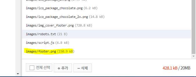 ./images/footer.png 부분 중 연두빛 형광색으로 칠한 부분은 본인이 설정한 이미지명으로 변경하시면 됩니다.