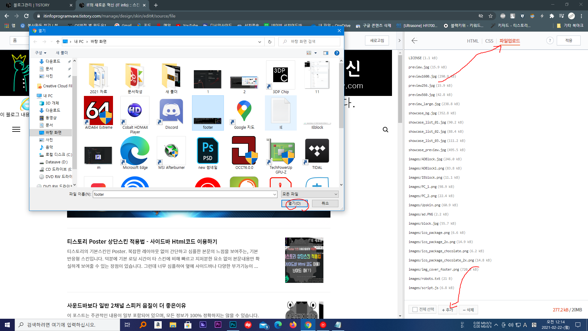 하단스킨 이미지 제작하기 / 티스토리 이미지파일 업로드하기