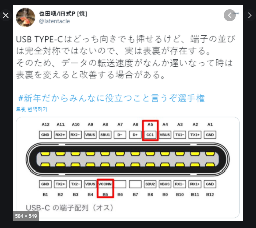 표준규격을 준수해서 제작된 C타입 케이블이라면 방향에는 문제없겠지만 실제로는 방향구분이 있는 (극성이 존재하는) 것들도 꽤 있어서 정방향으로 꽃아주어야 하는 케이블도 있습니다.